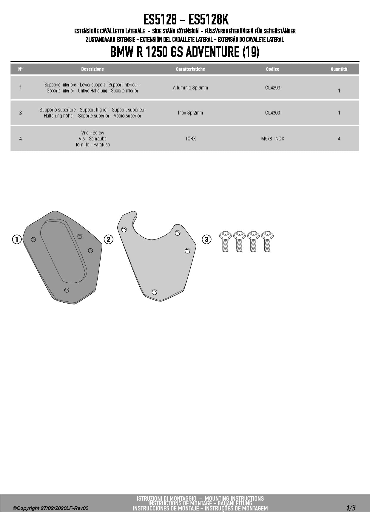 Poszerzenie stopki bocznej Givi ES5128 do motocykla BMW R1250GS Adventure (19-24)