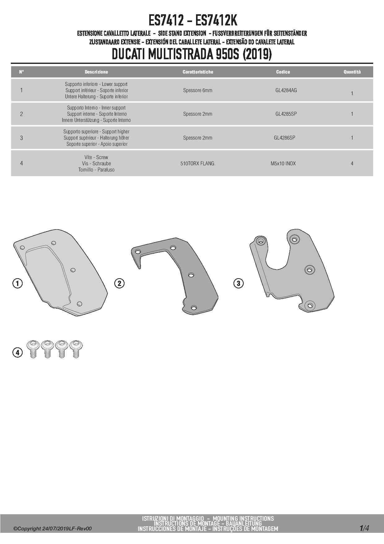Poszerzenie stopki bocznej Givi ES7412 do motocykla Ducati Multistrada 950 S (19-21) / Enduro 1260 (19-21)
