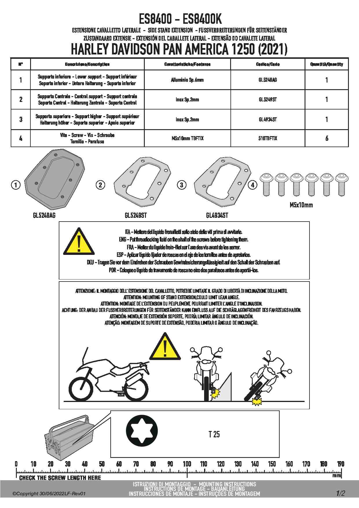 Poszerzenie stopki bocznej Givi ES8400 do motocykla Harley Davidson Pan America 1250 (21-25)