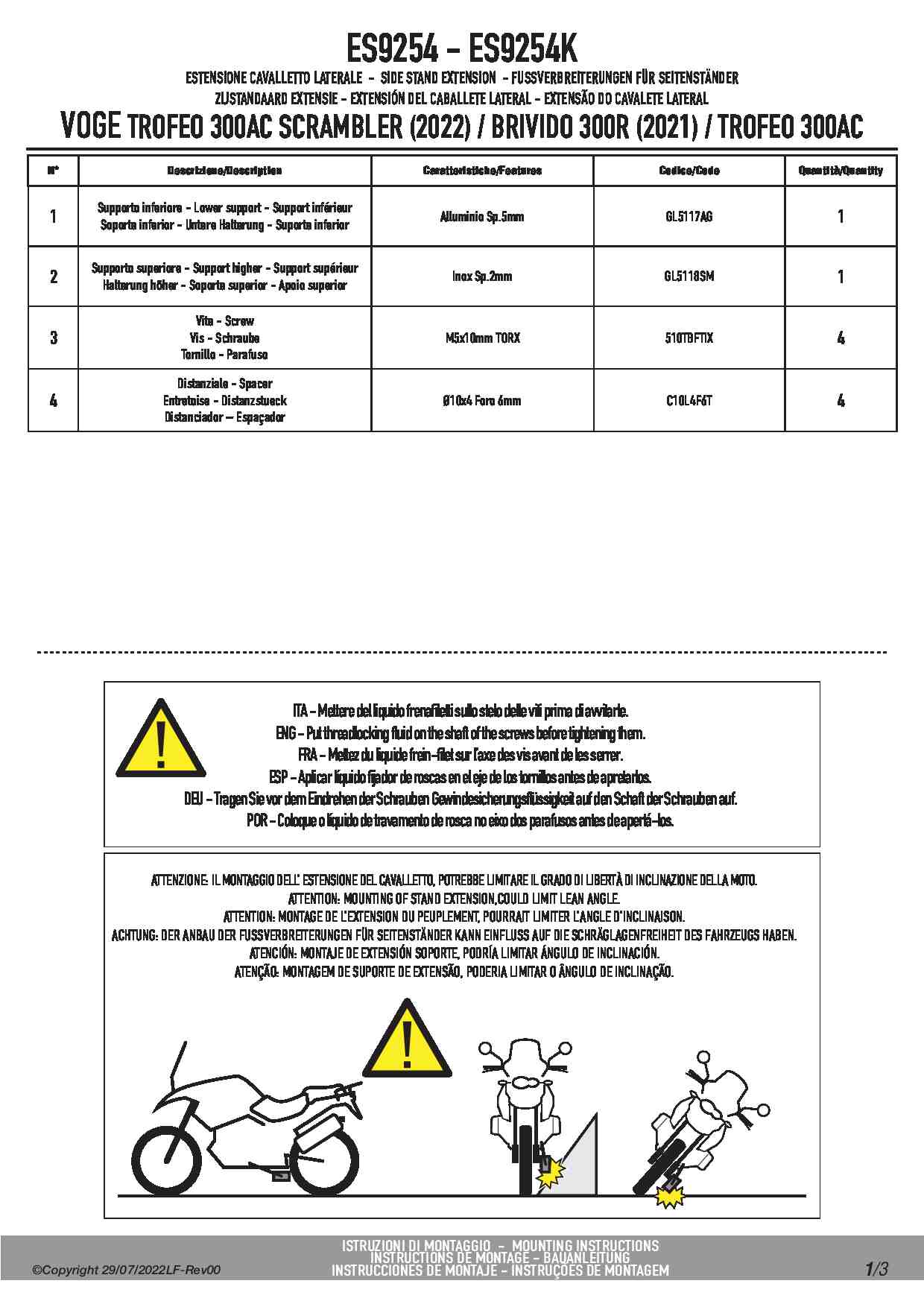 Givi ES9254 Poszerzenie stopki bocznej VOGE Brivido/Trofeo 300 (20-25)