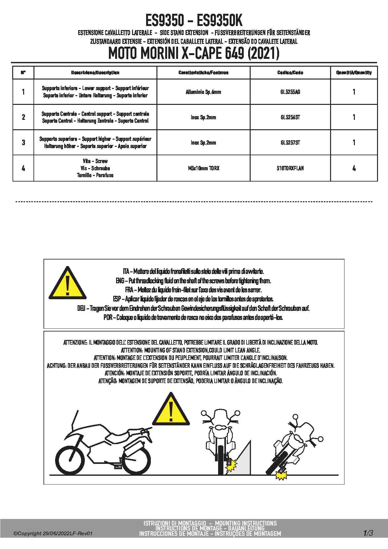 Poszerzenie stopki bocznej Givi ES9350 do motocykla Moto Morini X-Cape 649 (21-24)