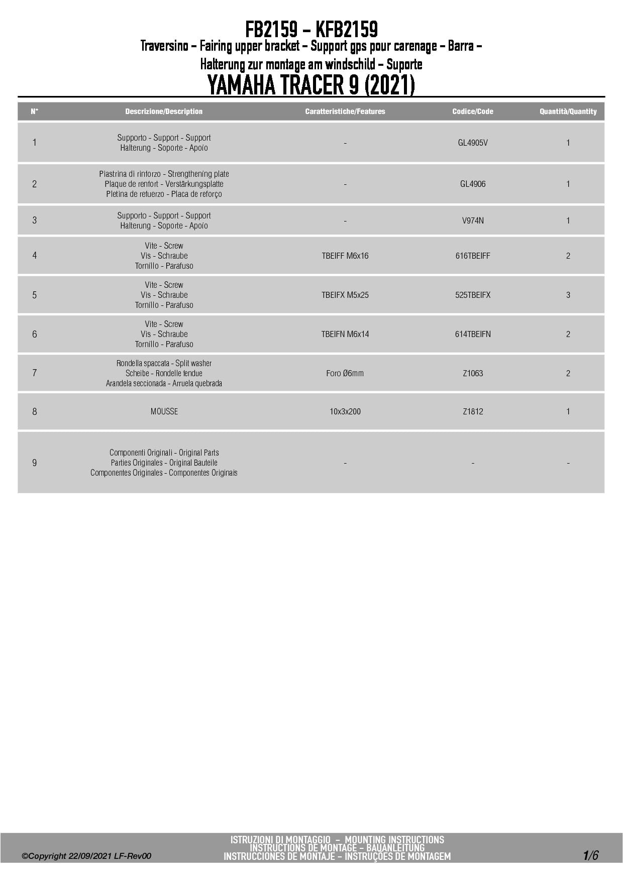Poprzeczka na uchwyt GPS Givi FB2159 do motocykla Yamaha Tracer 9 / Tracer 9 GT (21-24)