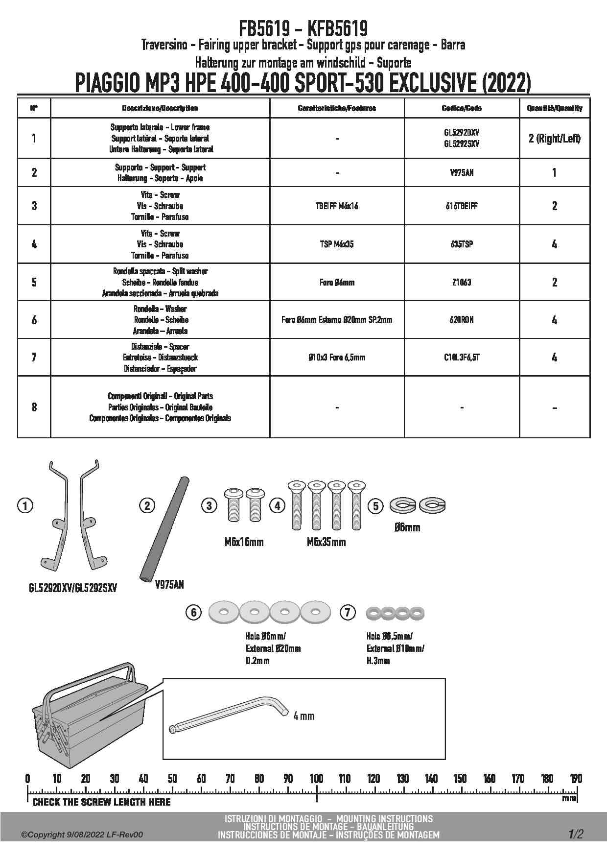 Poprzeczka na GPS Givi FB5619 Piaggio MP3 HPE 400-400 Sport / 530 Exclusive (22-25)
