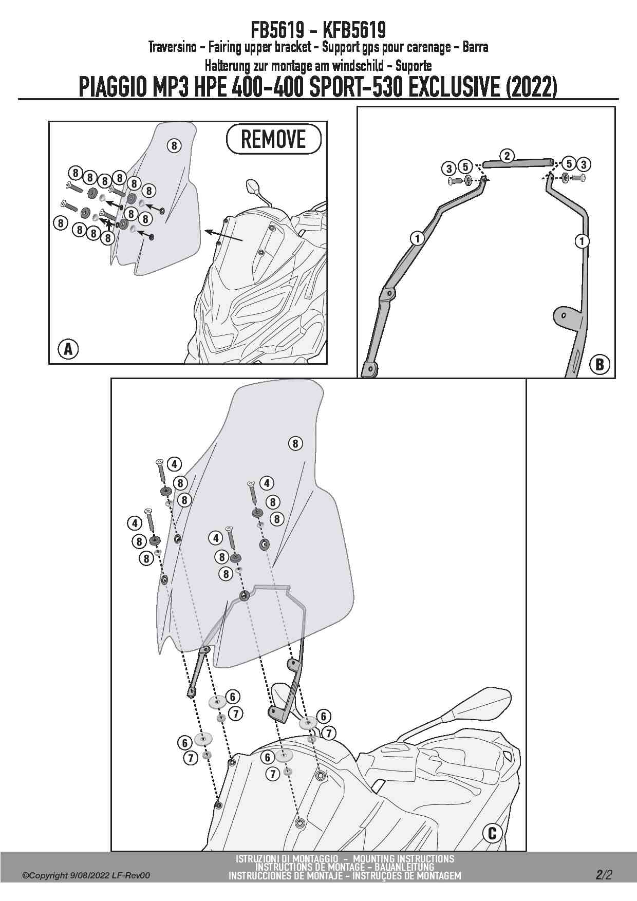 Givi FB5619 Poprzeczka GPS na kierownicę Piaggio MP3 HPE 400-400 Sport / 530 Exclusive (22-25)