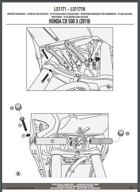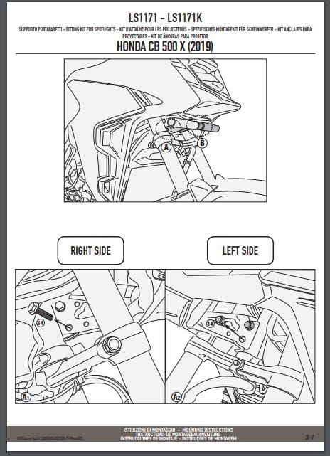 Mocowania halogenów zostały zaprojektowane w taki sposób, aby umożliwić montaż w optymalnym miejscu pod czaszą halogeny z oferty Givi takie jak: