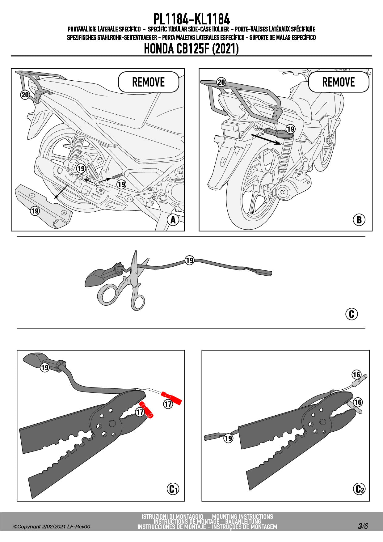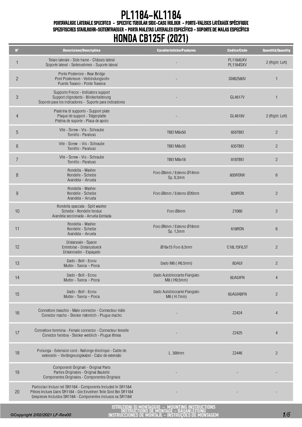 Dodatkowe adnotacje do stelaży bocznych Givi PL1184: