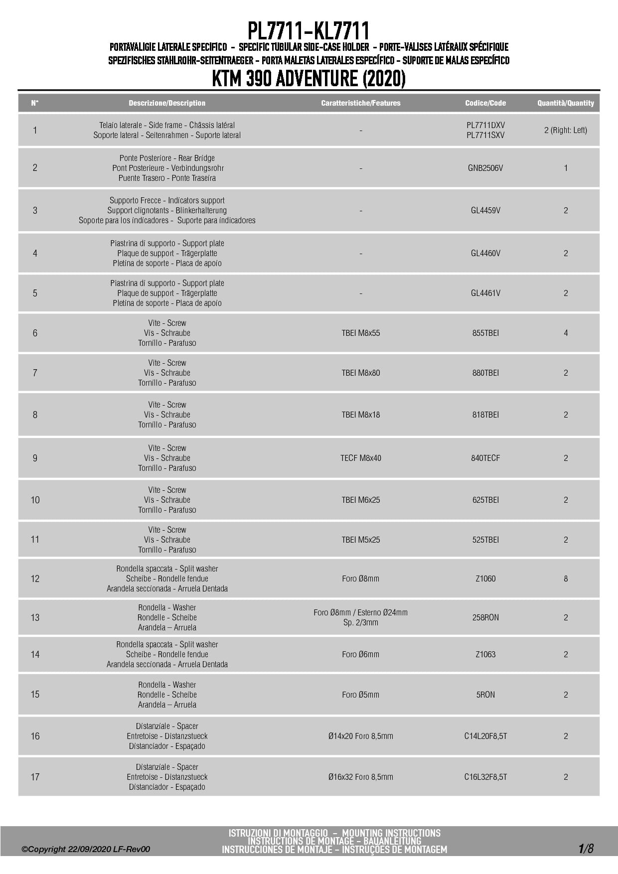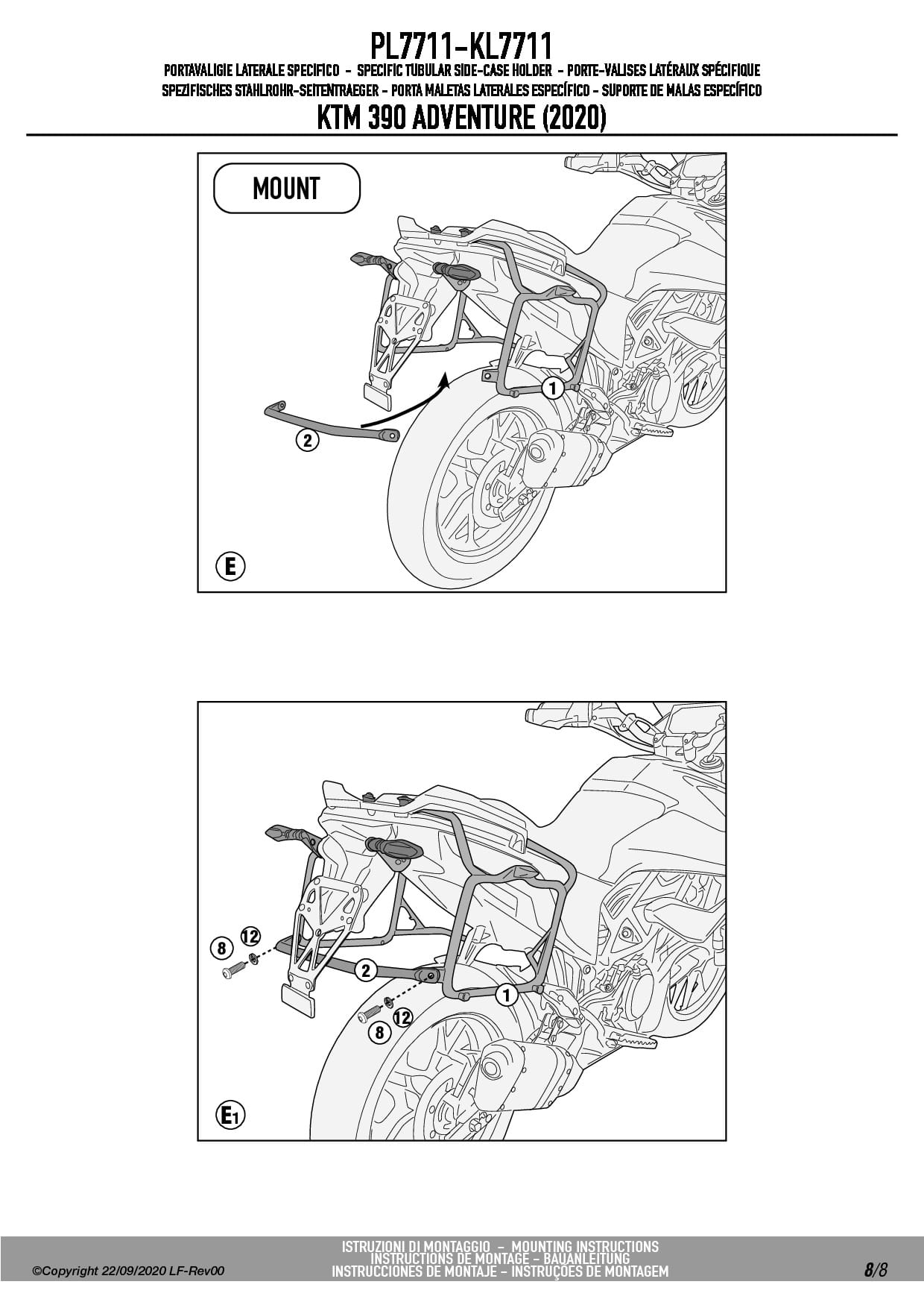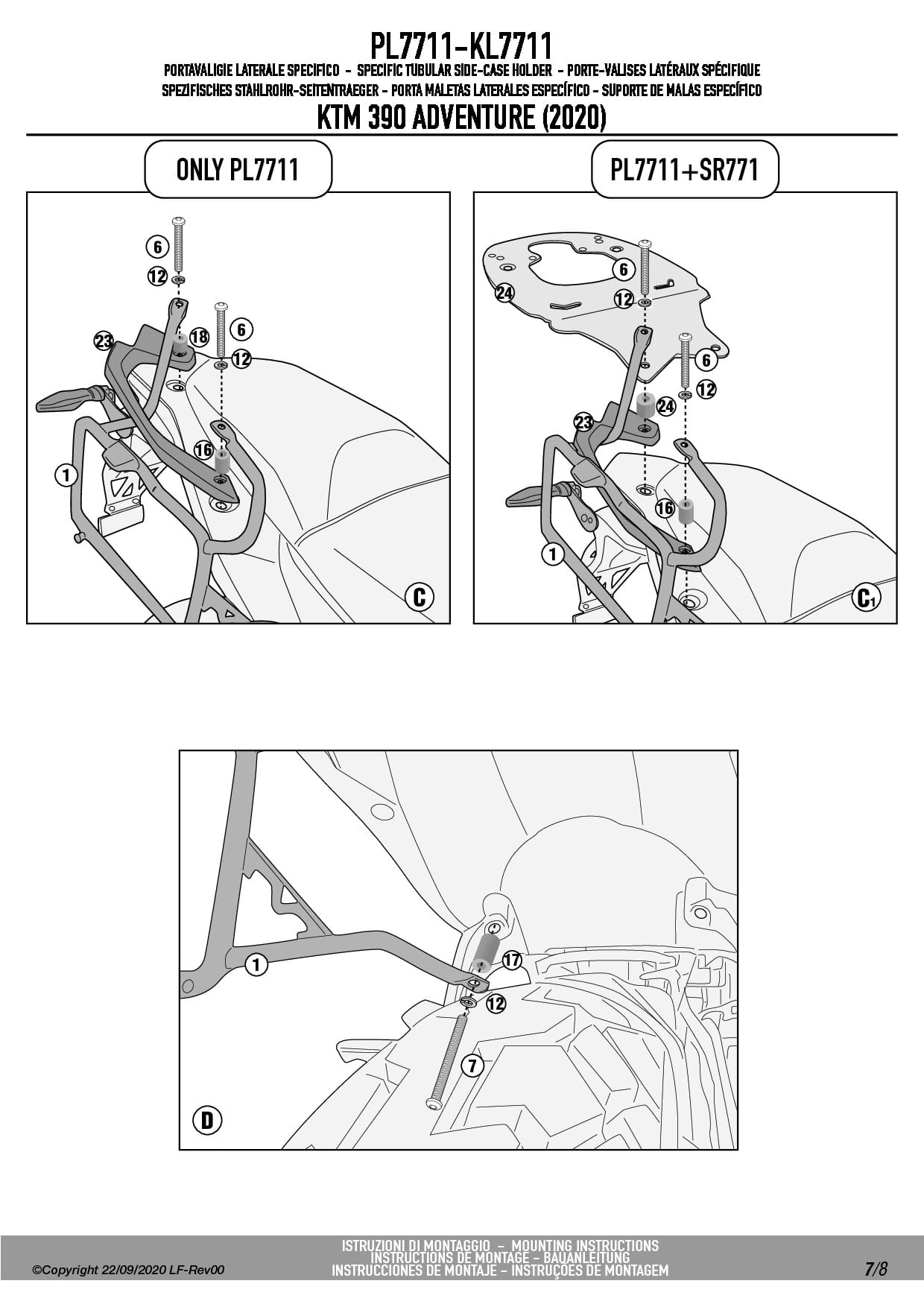 Dodatkowe adnotacje do stelaży bocznych Givi PL7711: