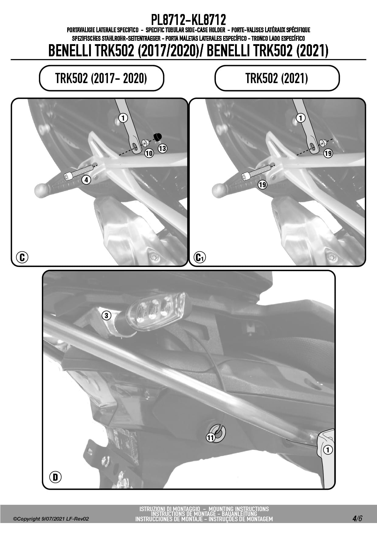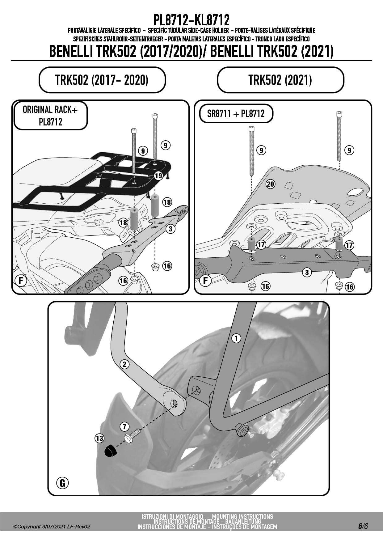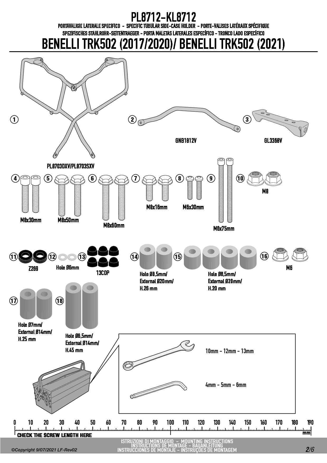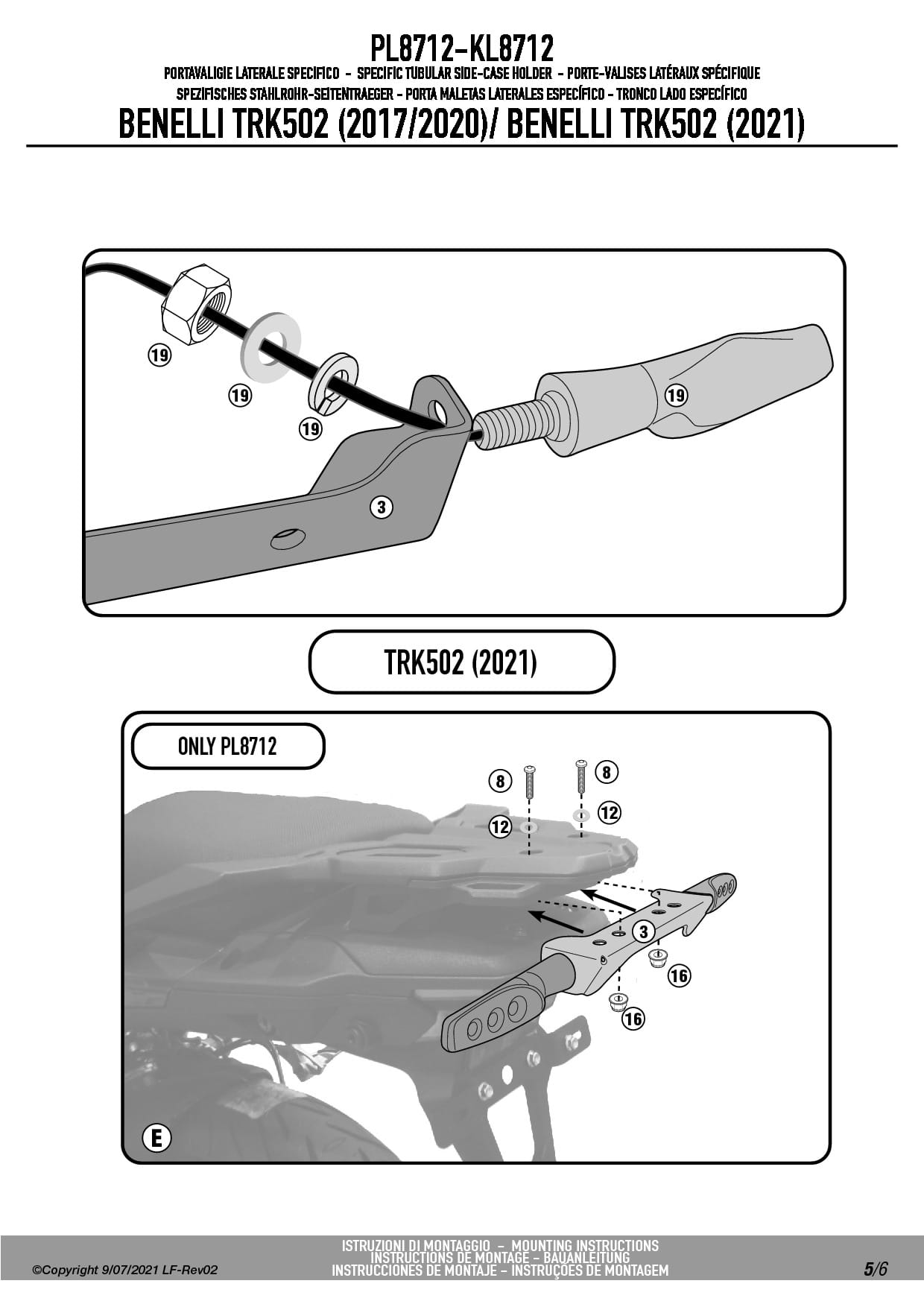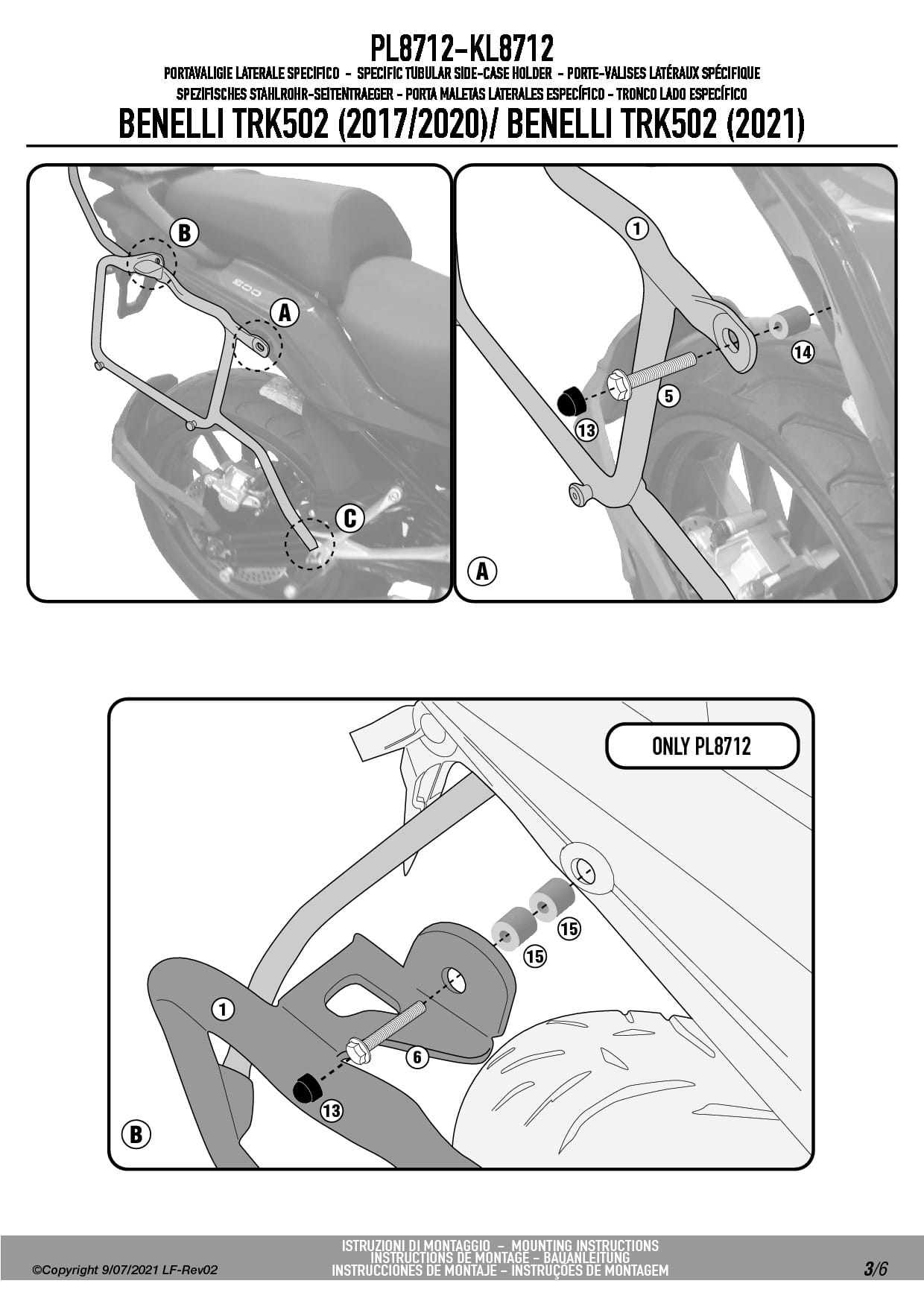 Dodatkowe adnotacje do stelaży bocznych Givi PL8712: