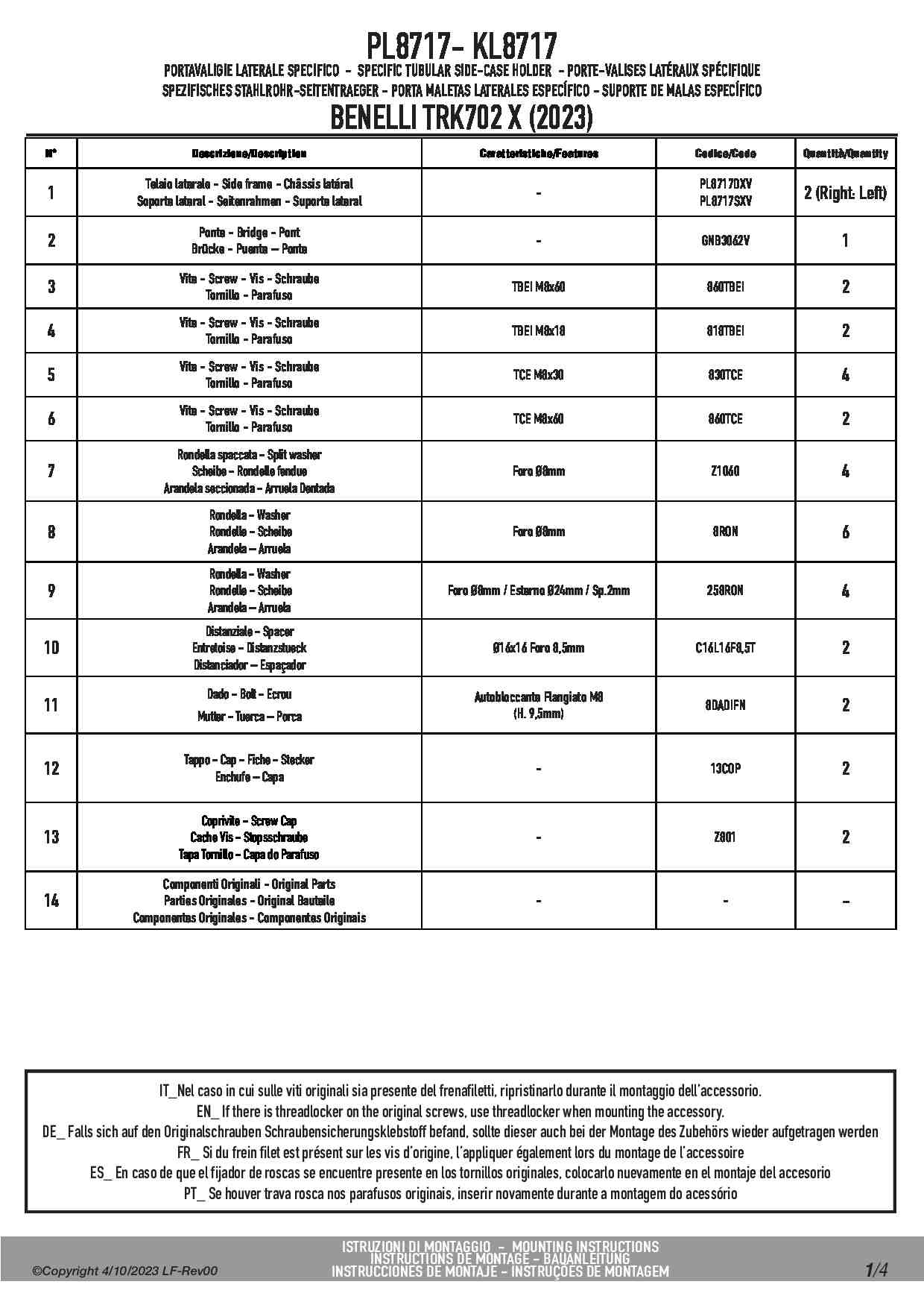 Givi PL8717 Stelaż kufrów bocznych Benelli TRK702/X (23-25) MONOKEY