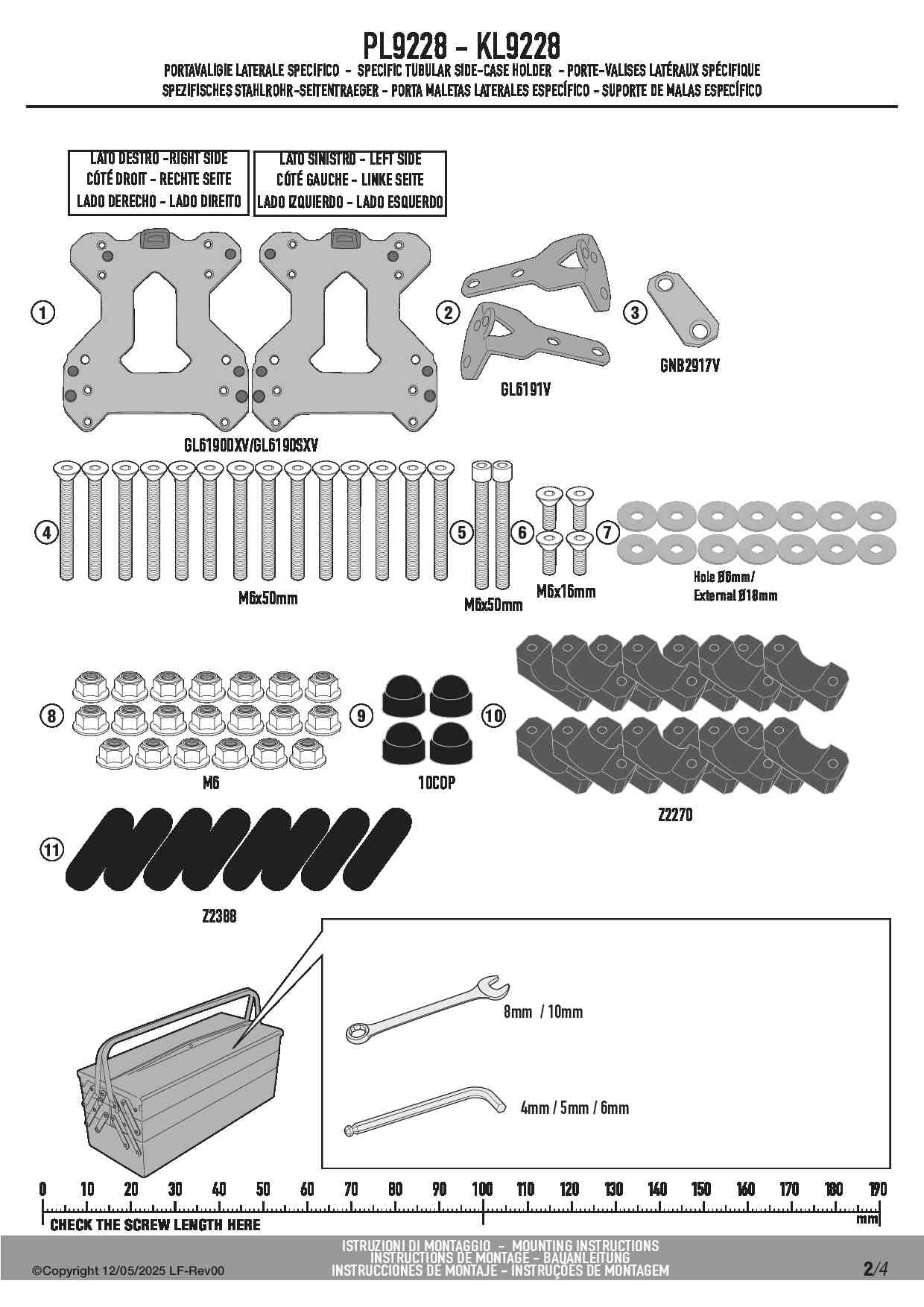 Dodatkowe adnotacje do stelaży bocznych Givi PL9228: