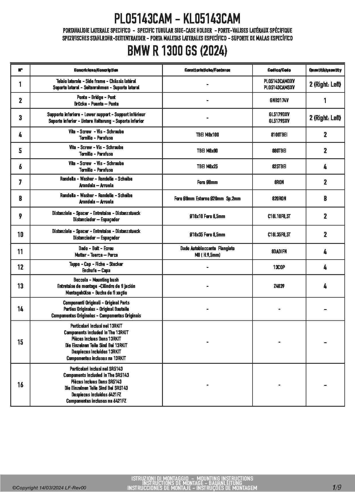 Stelaż kufrów bocznych Givi PLO5143CAM do motocykla BMW R1300GS (24-25)