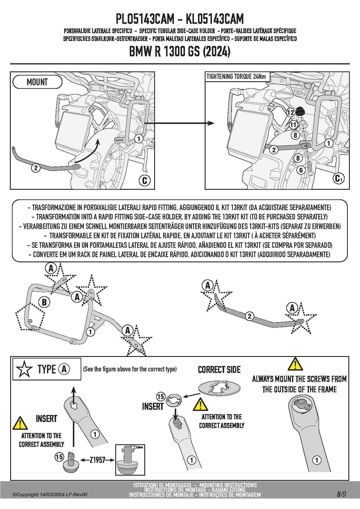 Givi PLO5143CAM Stelaż kufrów bocznych BMW R1300GS (24-25) MONOKEY CAM-SIDE