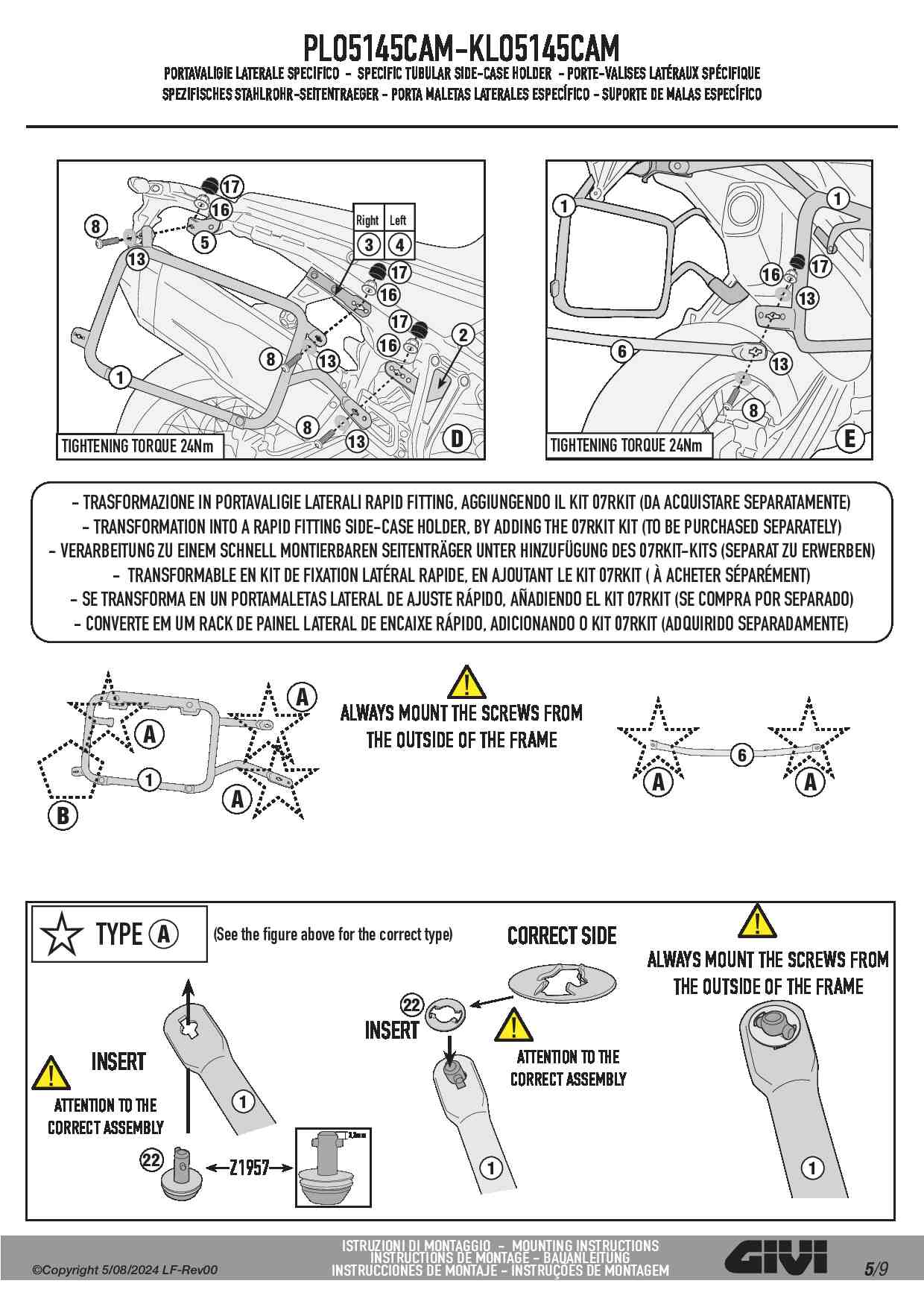 Givi Stelaż kufrów bocznych PL ONE-FIT (PLO) został stworzony, aby nas nie ograniczać! Dzięki temu rozwiązaniu możemy wykorzystać ten sam stelaż aż do trzech różnych systemów!