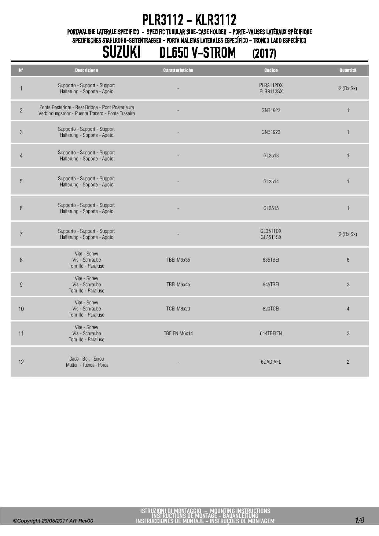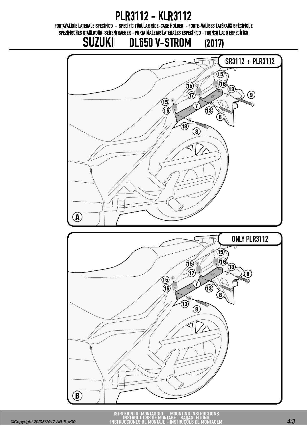 Dodatkowe adnotacje do stelaży bocznych Givi PLR3112: