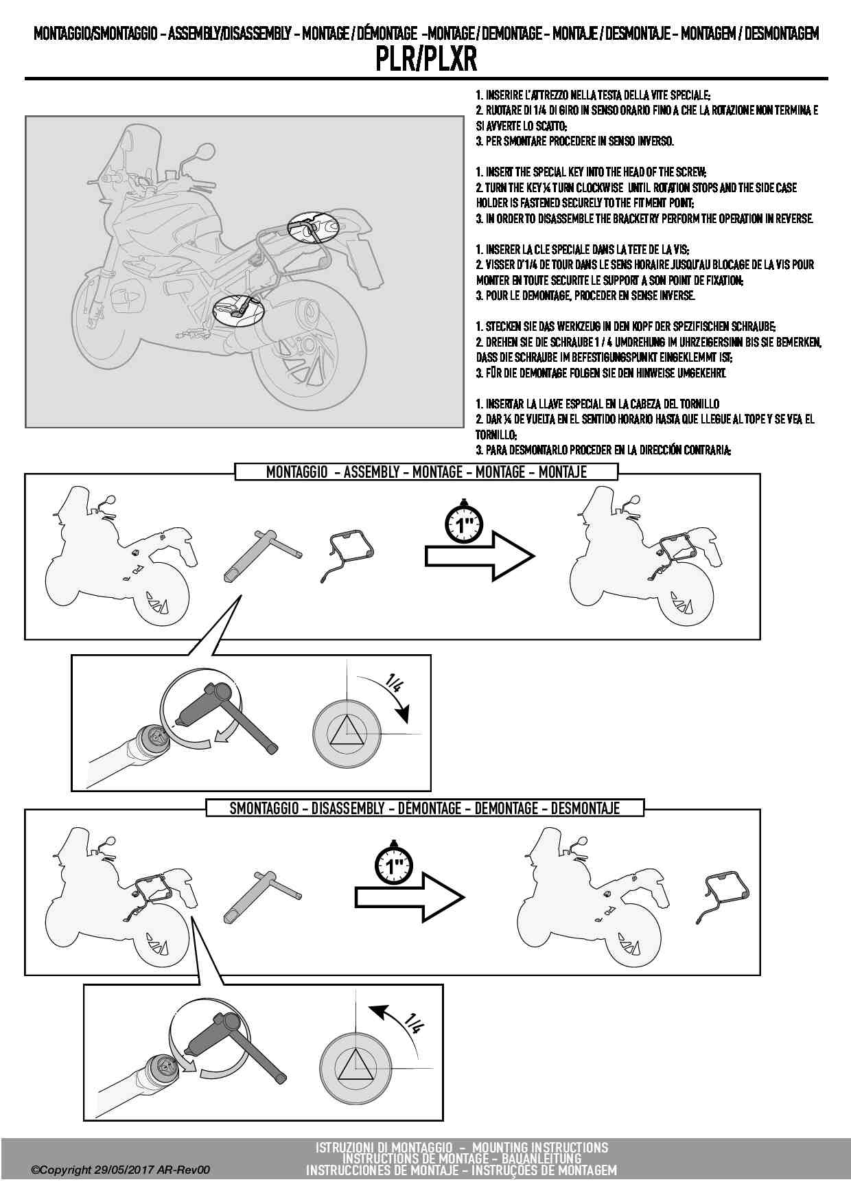 Stelaże PLR czyli w systemie Rapid release umożliwiają szybki demontaż stelaża z motocykla za pomocą kluczyka dołączonego w zestawie. Cała operacja trwa nie więcej niż minutę, a na motocyklu zostaje sama baza stelaża, która nie rzuca się w oczy.