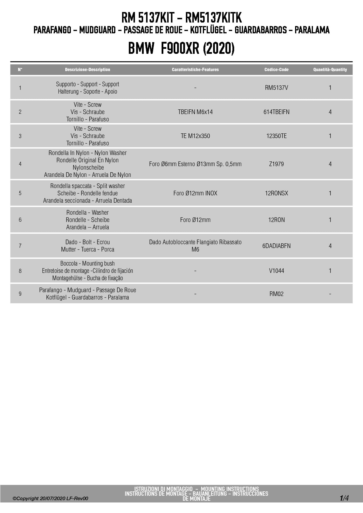 Givi RM5137KIT Mocowanie błotnika RM02 BMW F 900 XR / R (20-25)