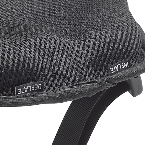 Wnętrze wykonane z TPU (termoplastycznego poliuretanu), wypełnione powietrzem, zostało pokryte oddychającą tkaniną w kolorze czarnym, która zapewnia komfort nawet podczas upałów. Dodatkowo, dolna część poduszki pokryta jest materiałem antypoślizgowym, który gwarantuje stabilność podczas jazdy.