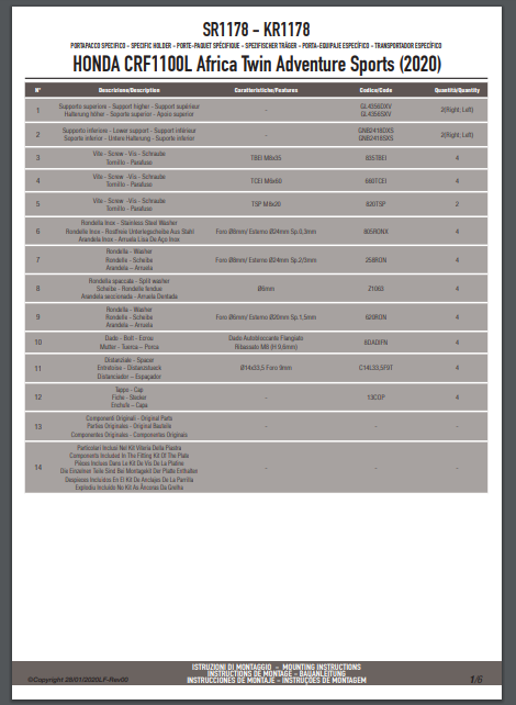 Givi SR1178 Stelaż kufra centralnego Honda CRF1100L Africa Twin / Adventure Sports (20-25)