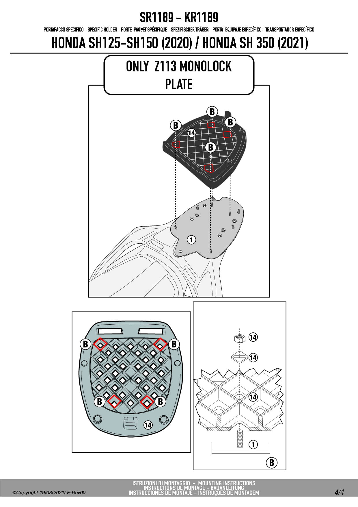 Stelaż kufra centralnego Givi SR1189 do skutera Honda SH 125-150 (20-25) / SH 350 (21-25)