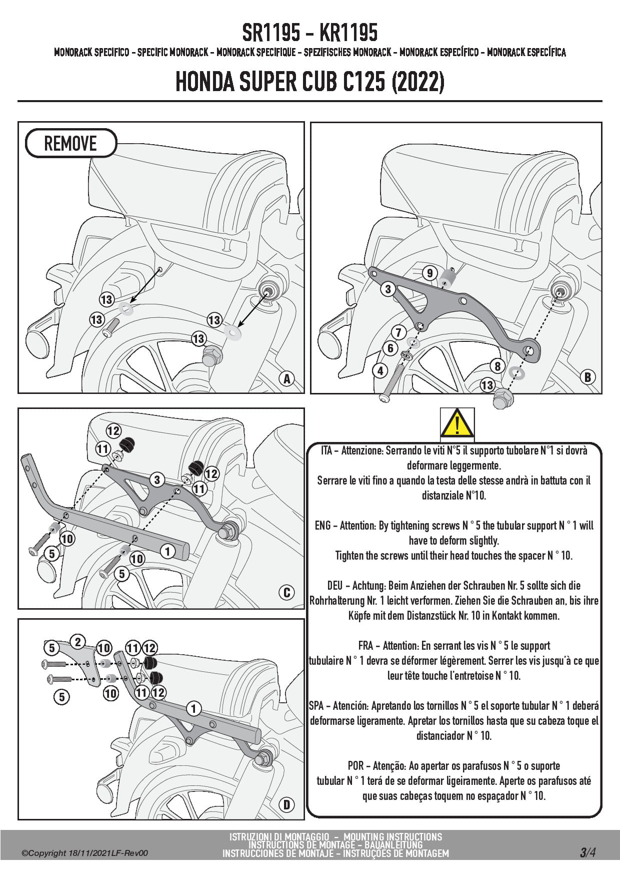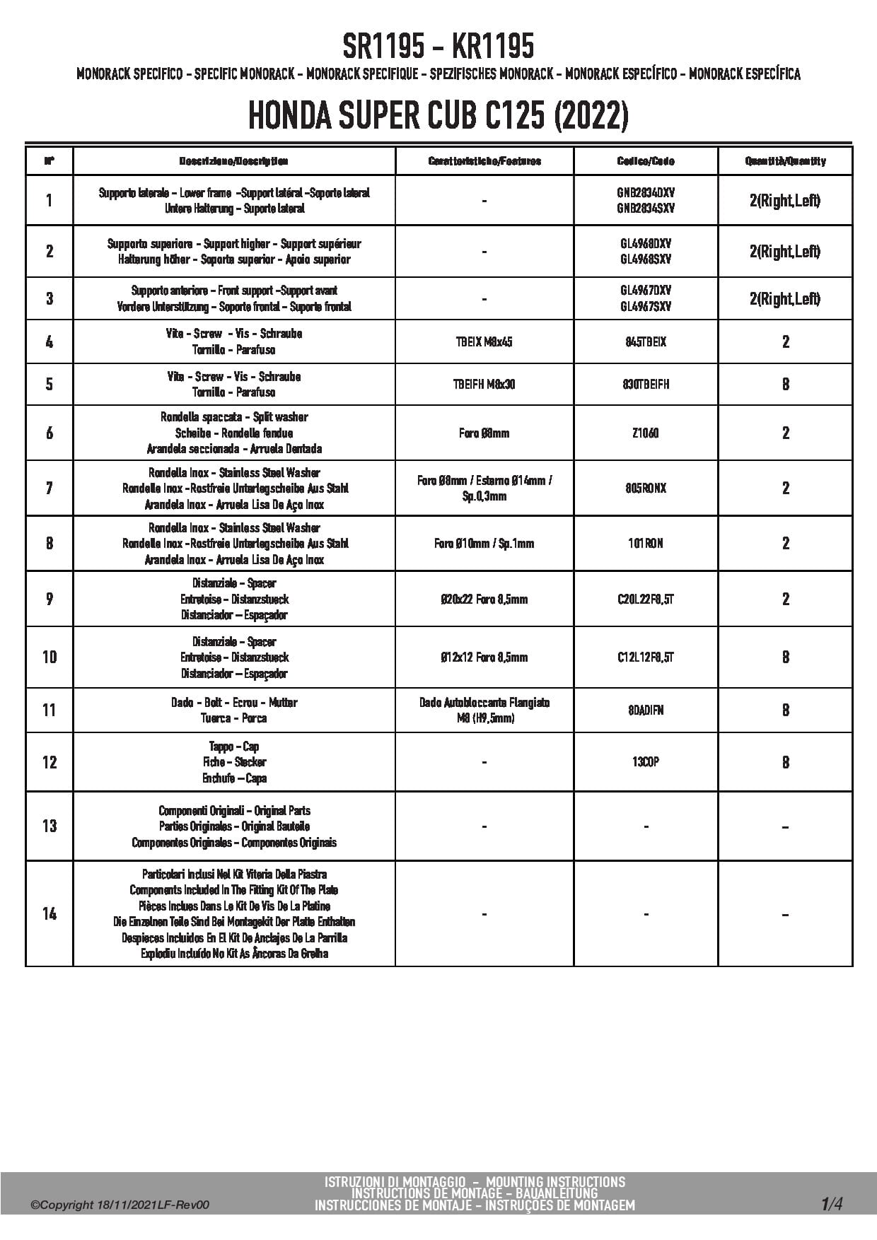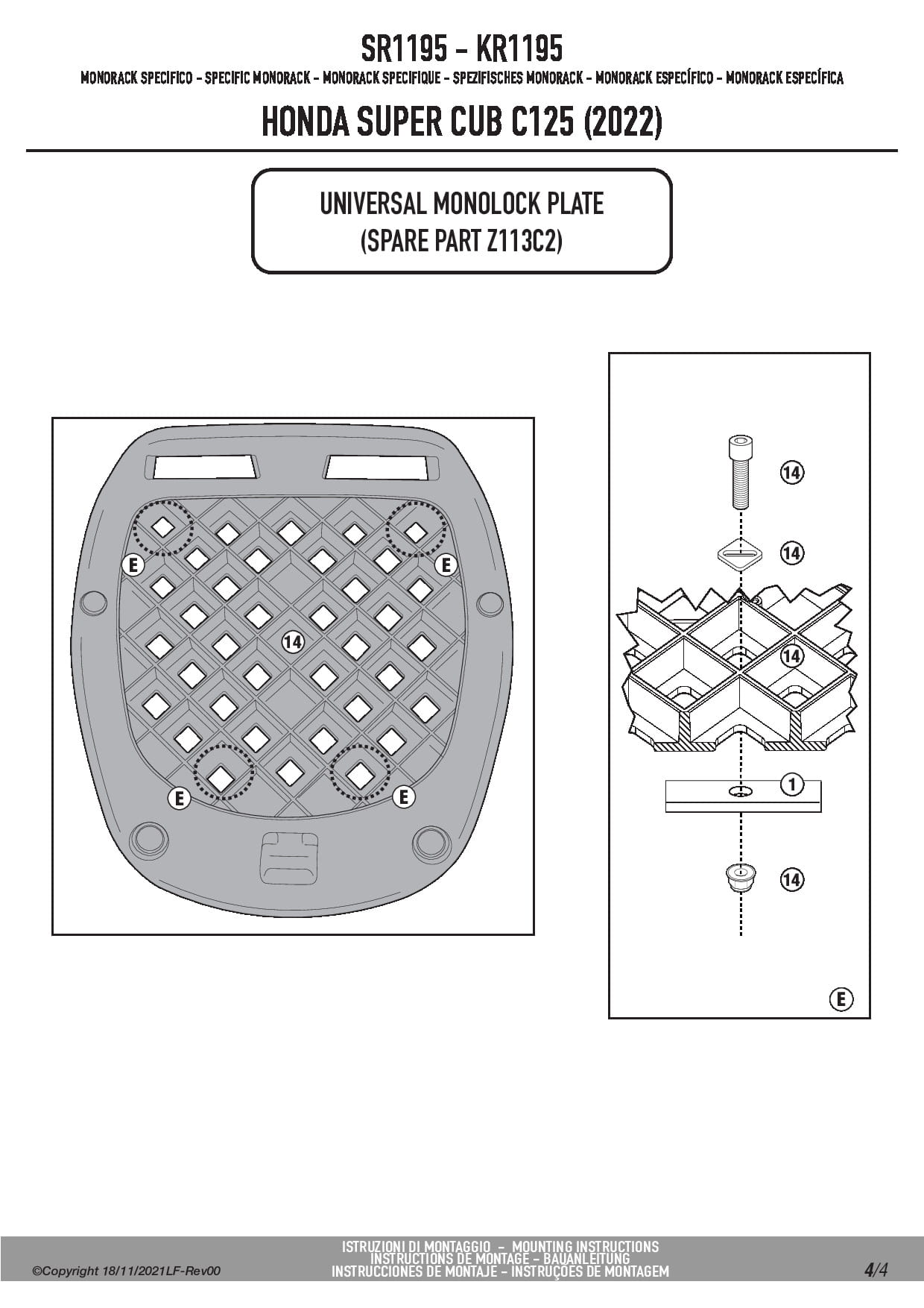 Stelaż kufra centralnego Givi SR1195 do motocykla Honda Super Cub C125 (22-25)