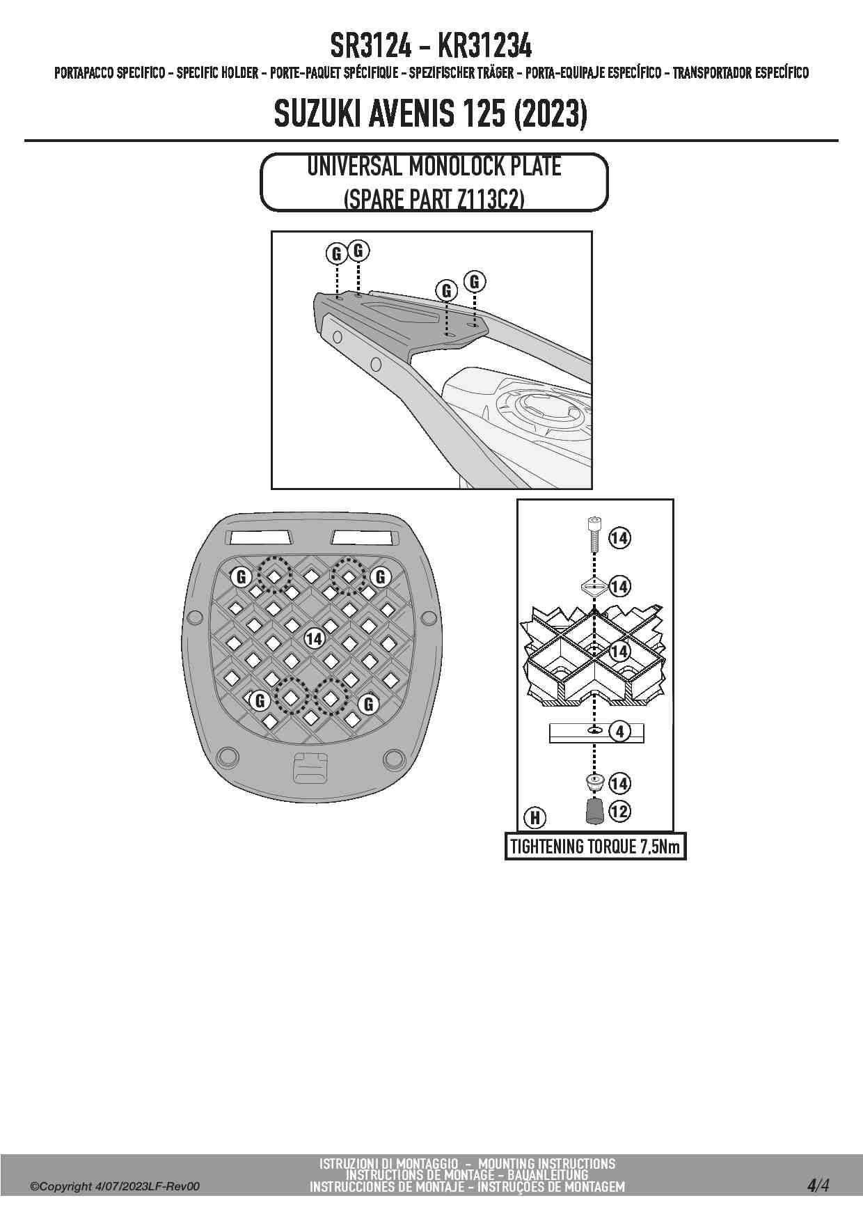 Stelaż kufra centralnego Givi SR3124 do skutera Suzuki Avenis 125 (23-25)