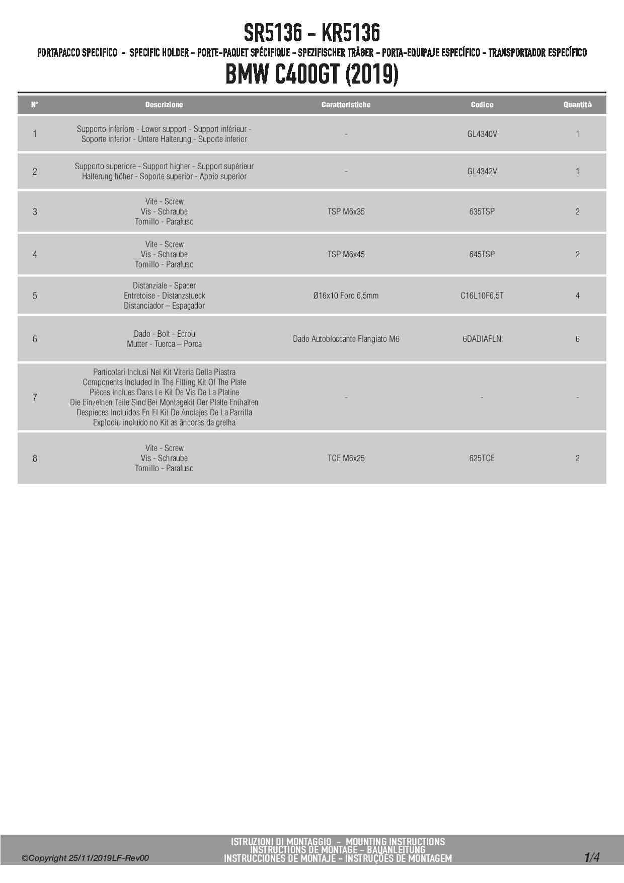Givi SR5136 Stelaż kufra centralnego BMW C 400 GT (19-24)