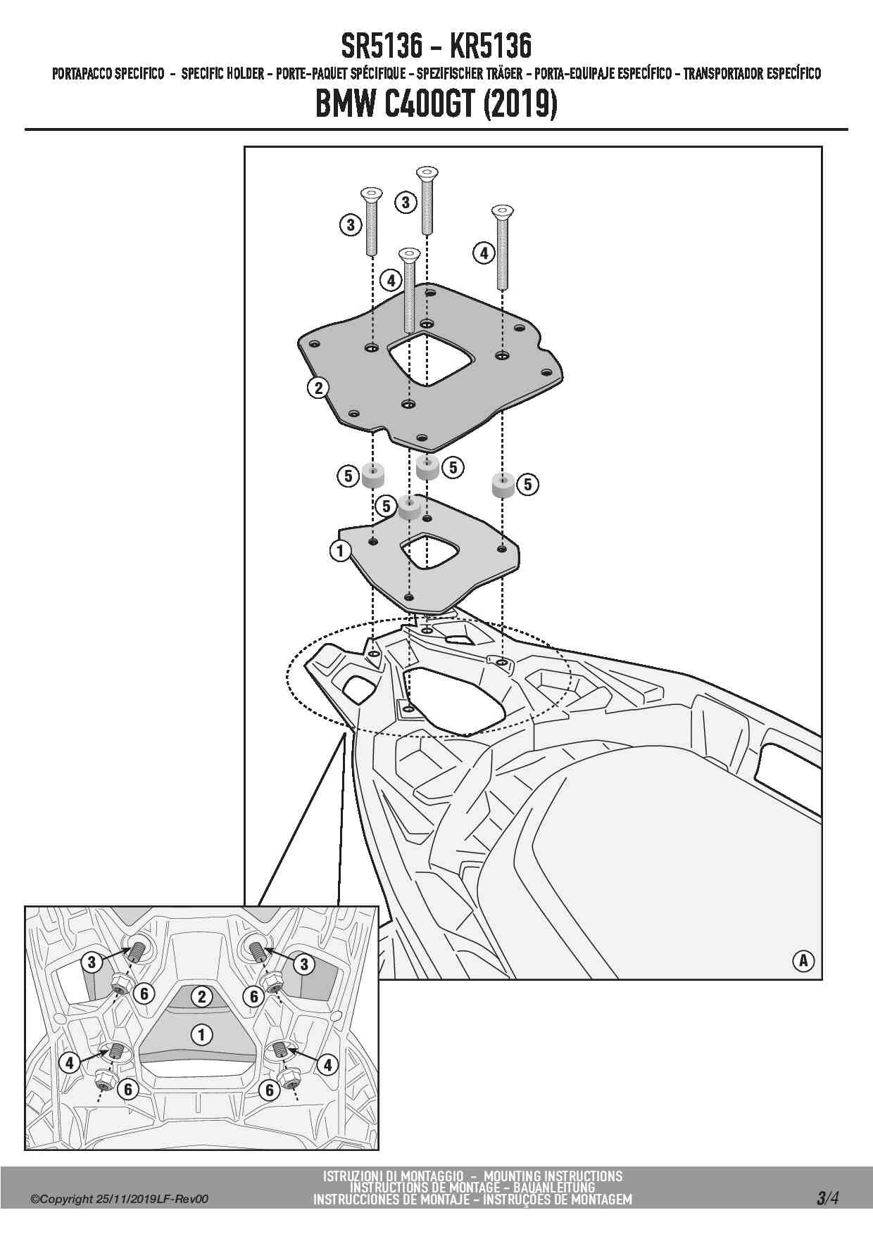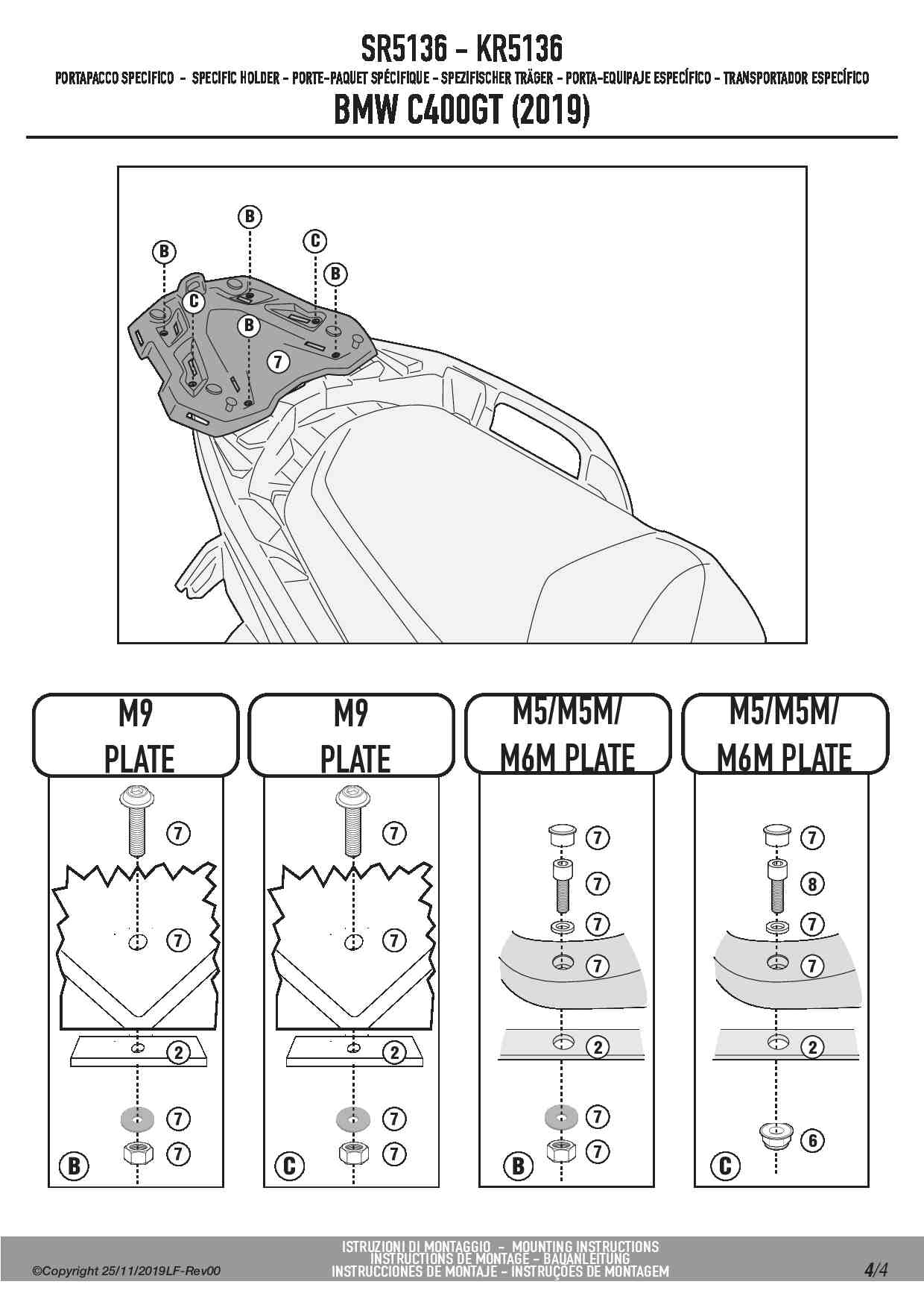 Stelaż kufra centralnego Givi SR5136 do skutera BMW C 400 GT (19-24)