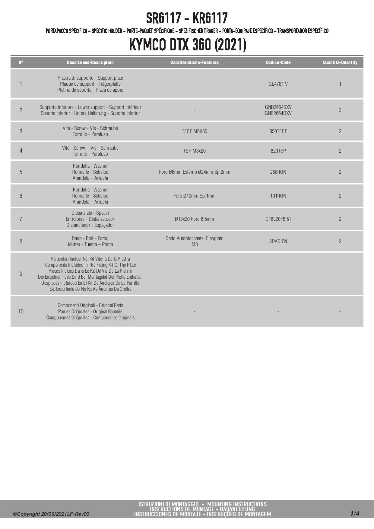 Givi SR6117 Stelaż kufra centralnego Kymco DTX 360 (21-25)