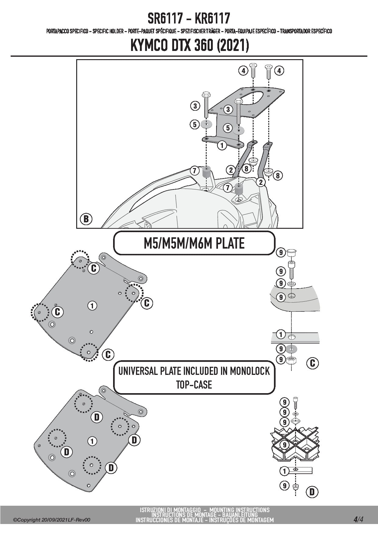 Pasujące płyty do stelaża Givi SR6117 w systemie MONOLOCK: