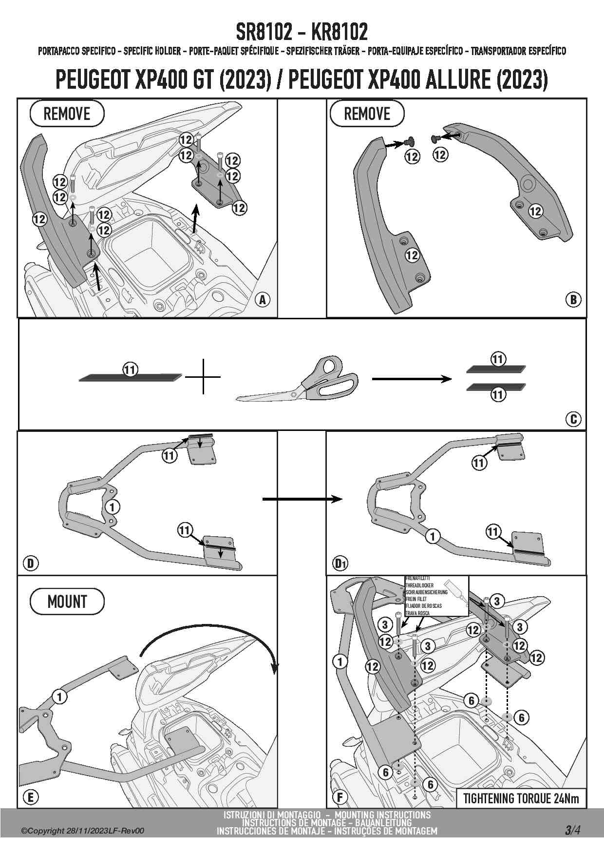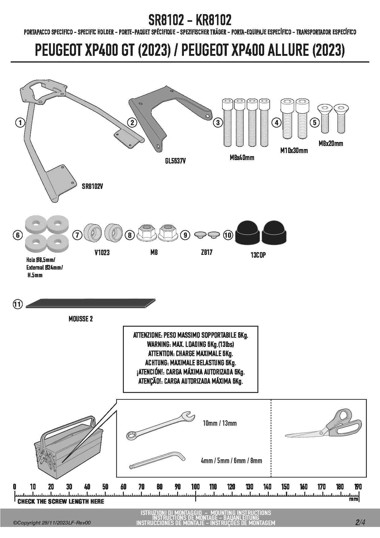 Stelaż kufra centralnego Givi SR8102 do skutera Peugeot XP400 GT / Allure (23-25)
