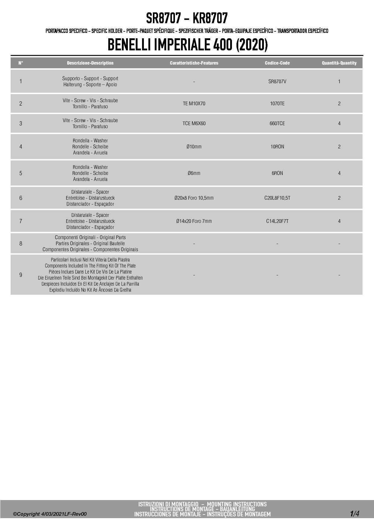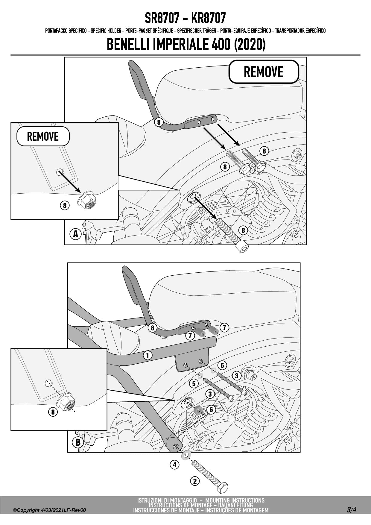 Stelaż kufra centralnego Givi SR8707 do motocykla Benelli Imperiale 400 (20-25)