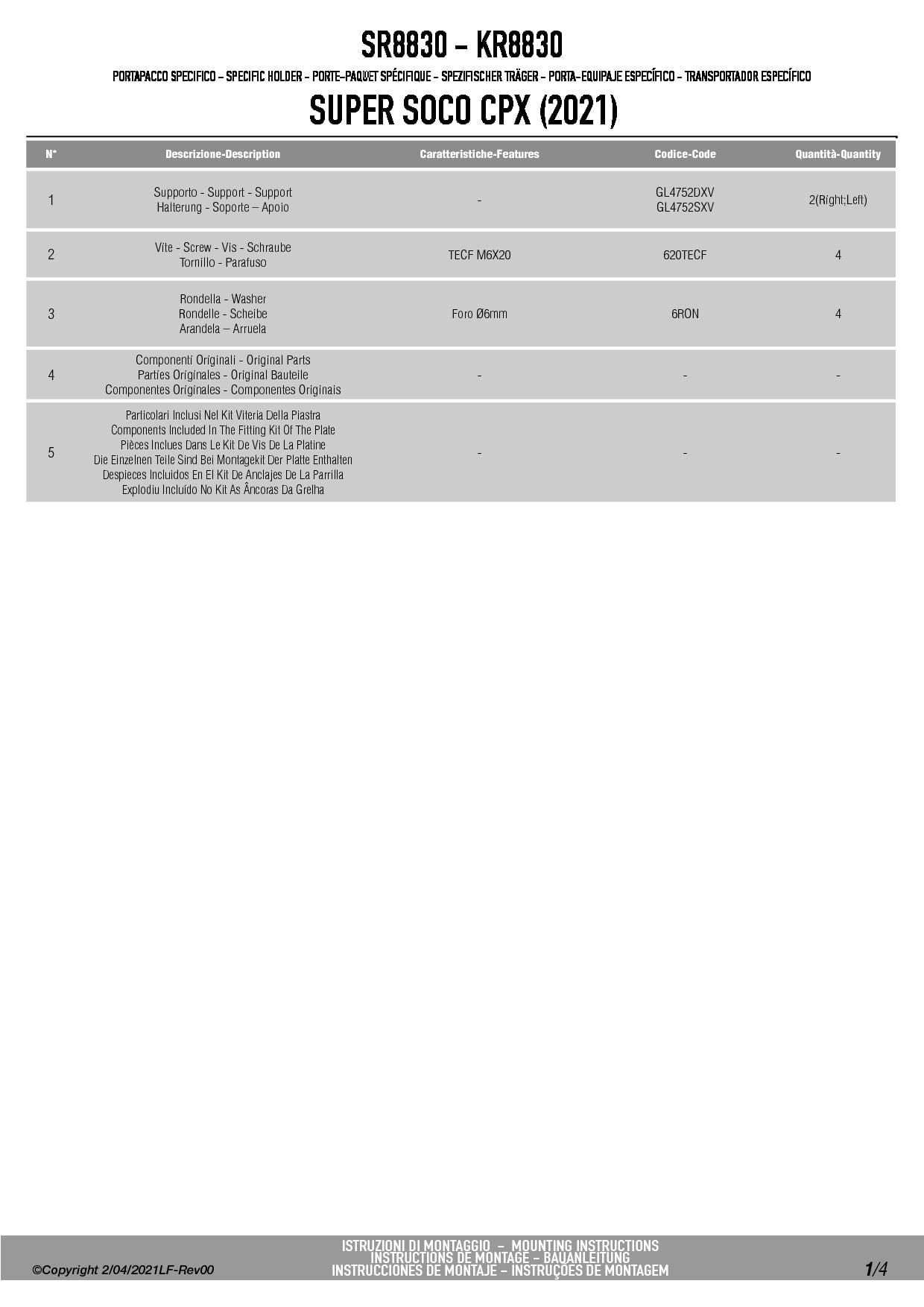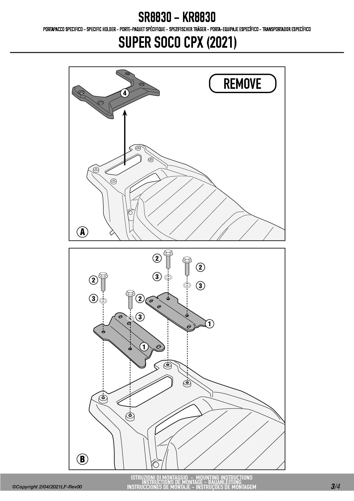 Stelaż kufra centralnego Givi SR8830 do skutera Super Soco CPX (21-25)
