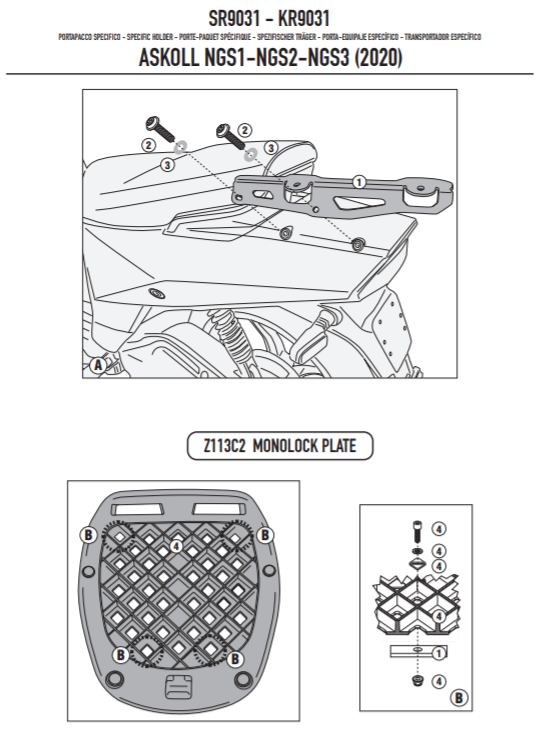 Stelaż kufra centralnego Givi SR9031 do skutera Askoll NGS1/NGS2/NGS3 (20-25)
