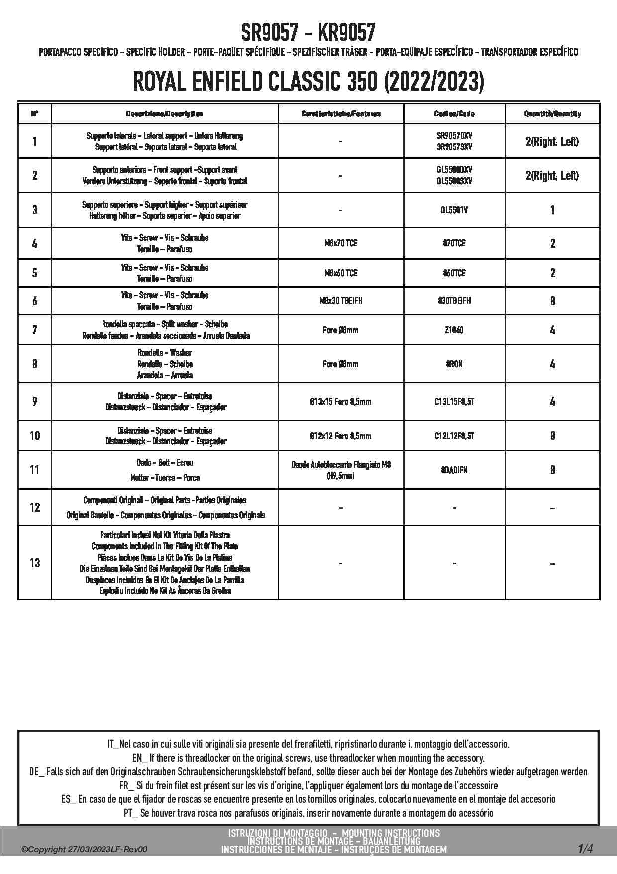 Montaż możliwy tylko wtedy, gdy motocykl posiada siedzisko pasażera.