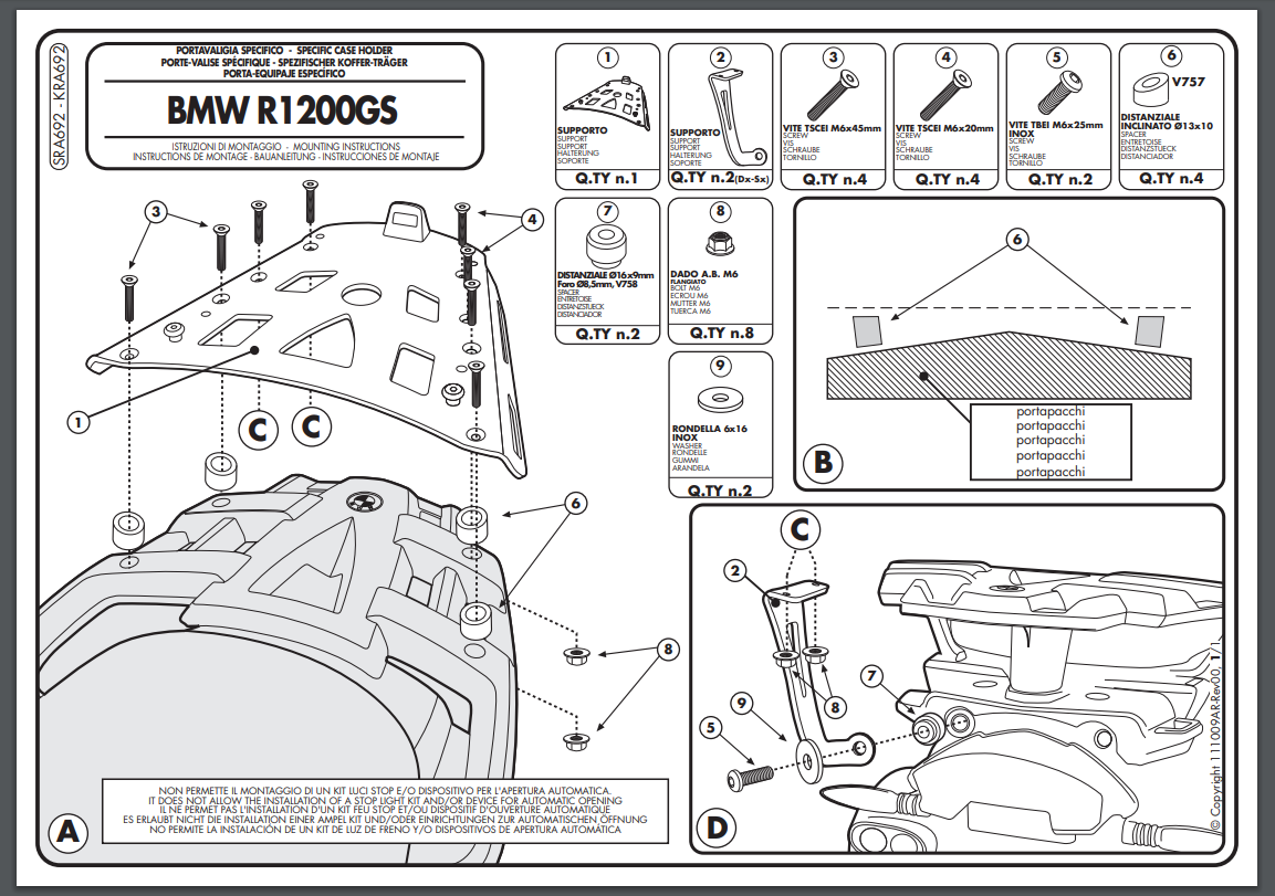 Stelaż kufra centralnego Givi SRA692 do motocykla BMW R 1200 GS (07-12)
