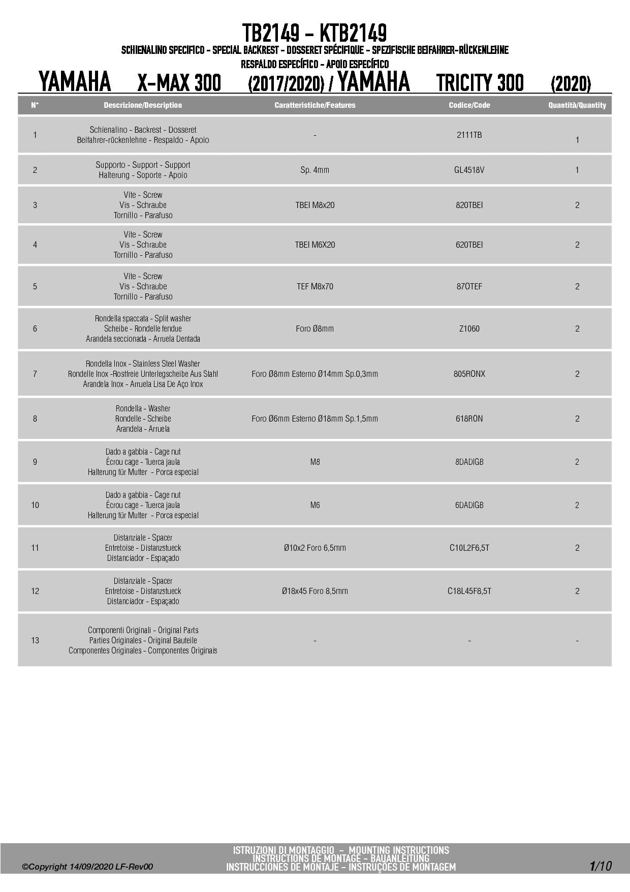 Givi TB2149 Oparcie dla pasażera YAMAHA Tricity 300, X-Max 125 / 300