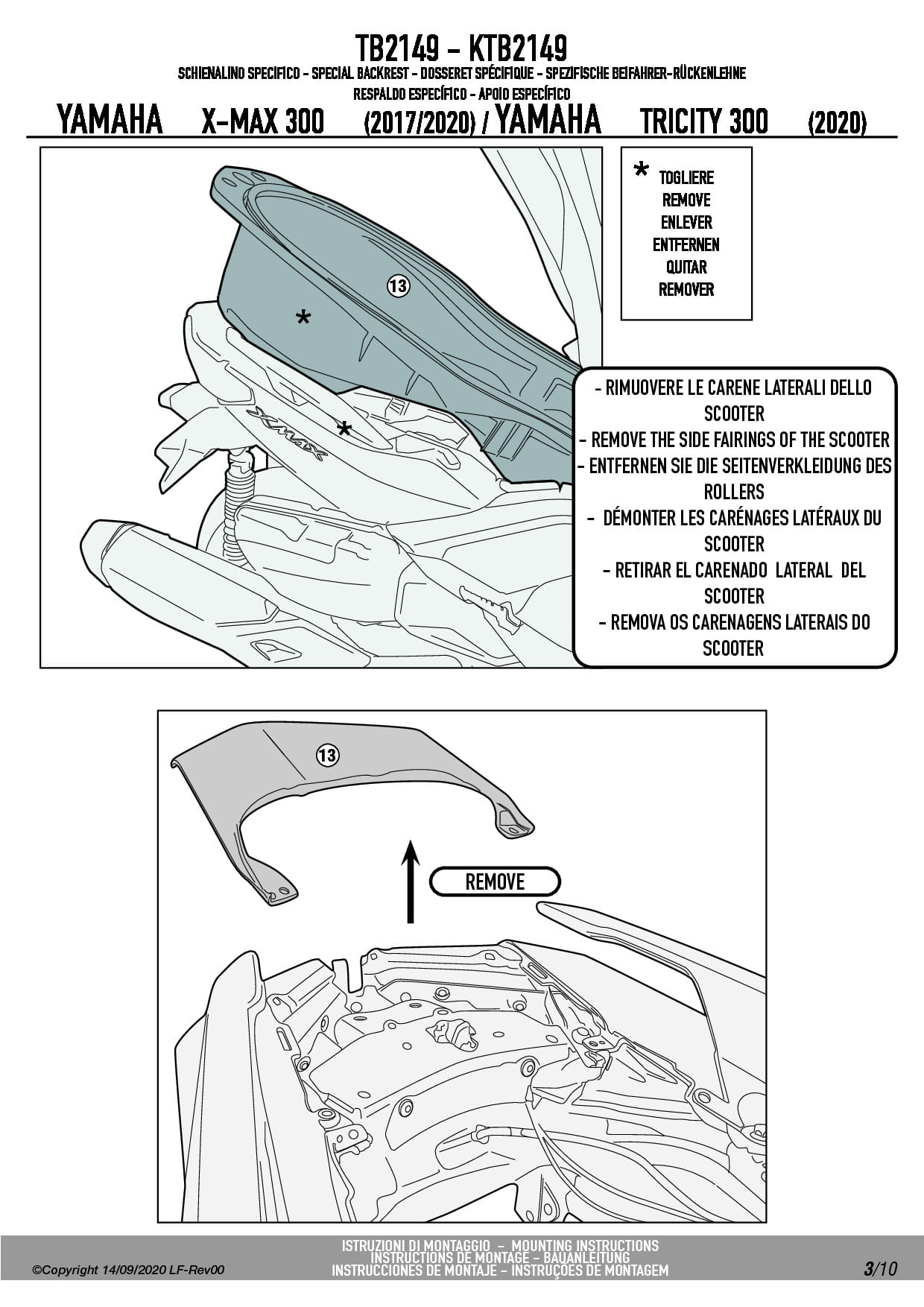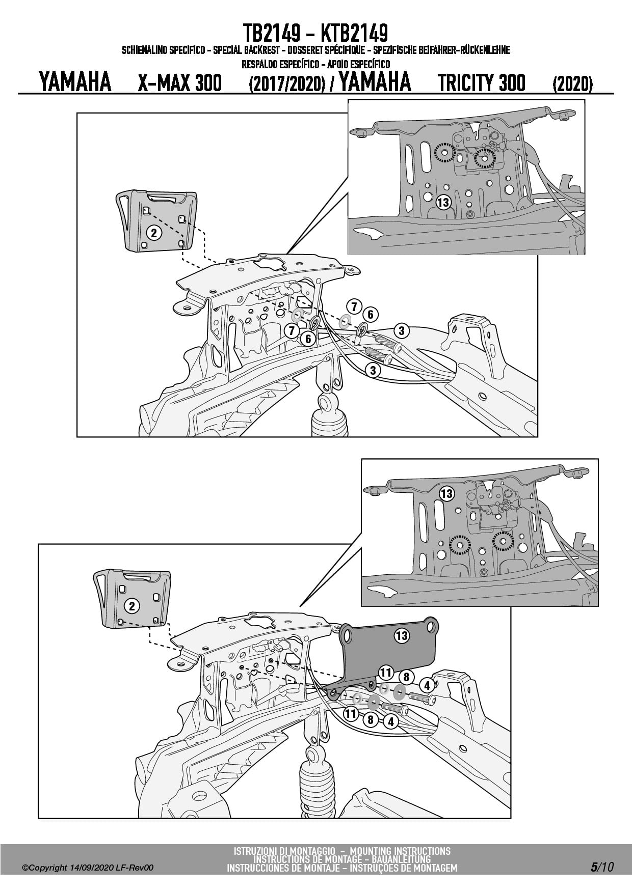 Oparcie dla pasażera Givi TB2149 do skutera YAMAHA Tricity 300 (20-25) / X-Max 125 (18-22) / 300 (17-22)