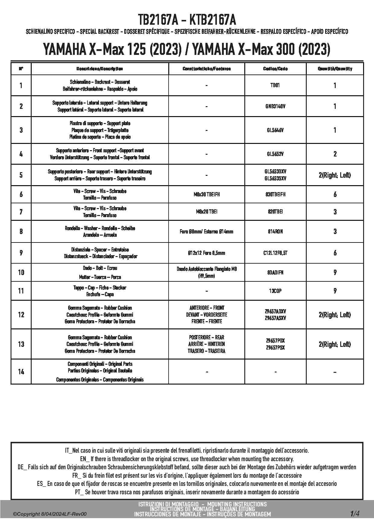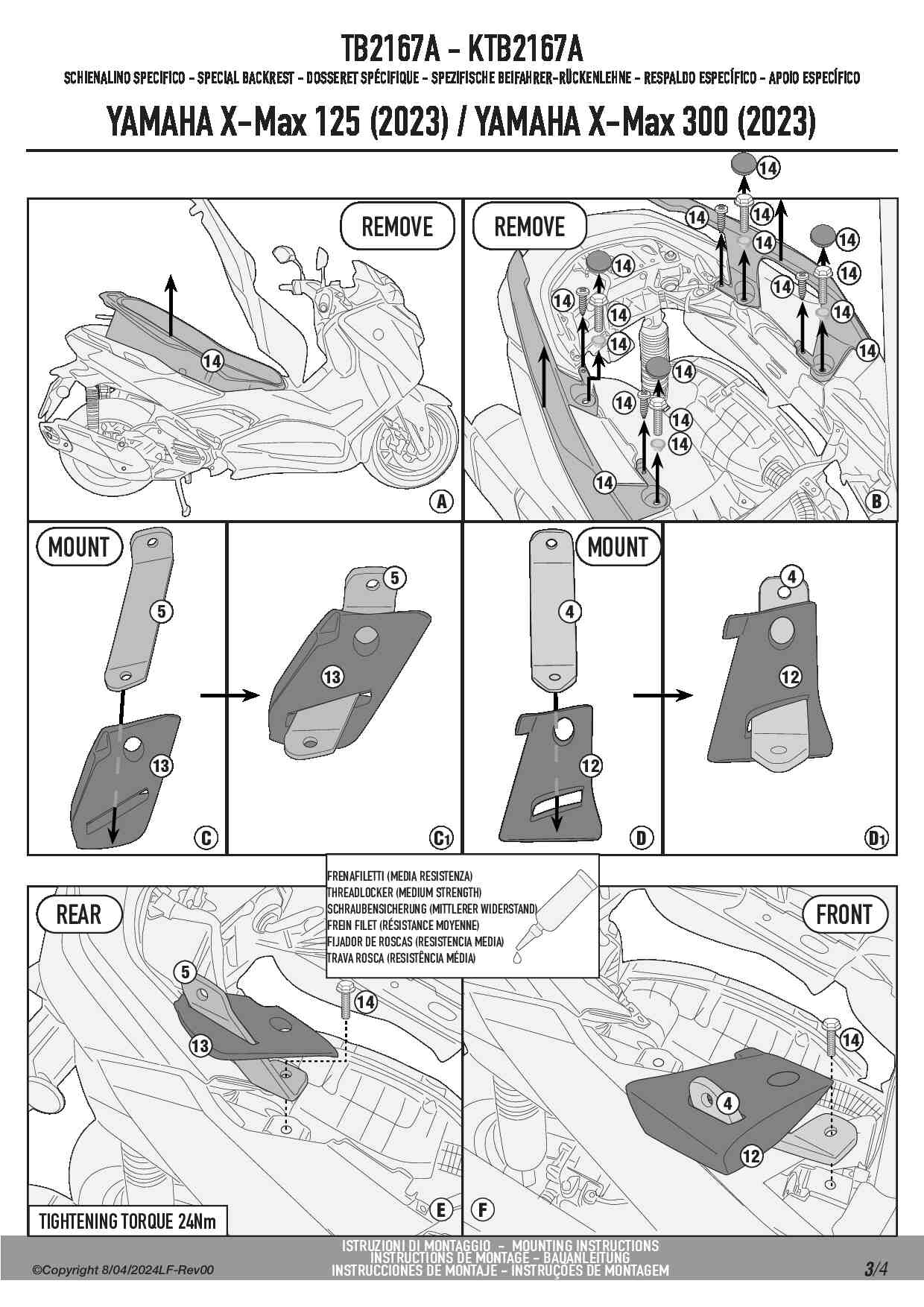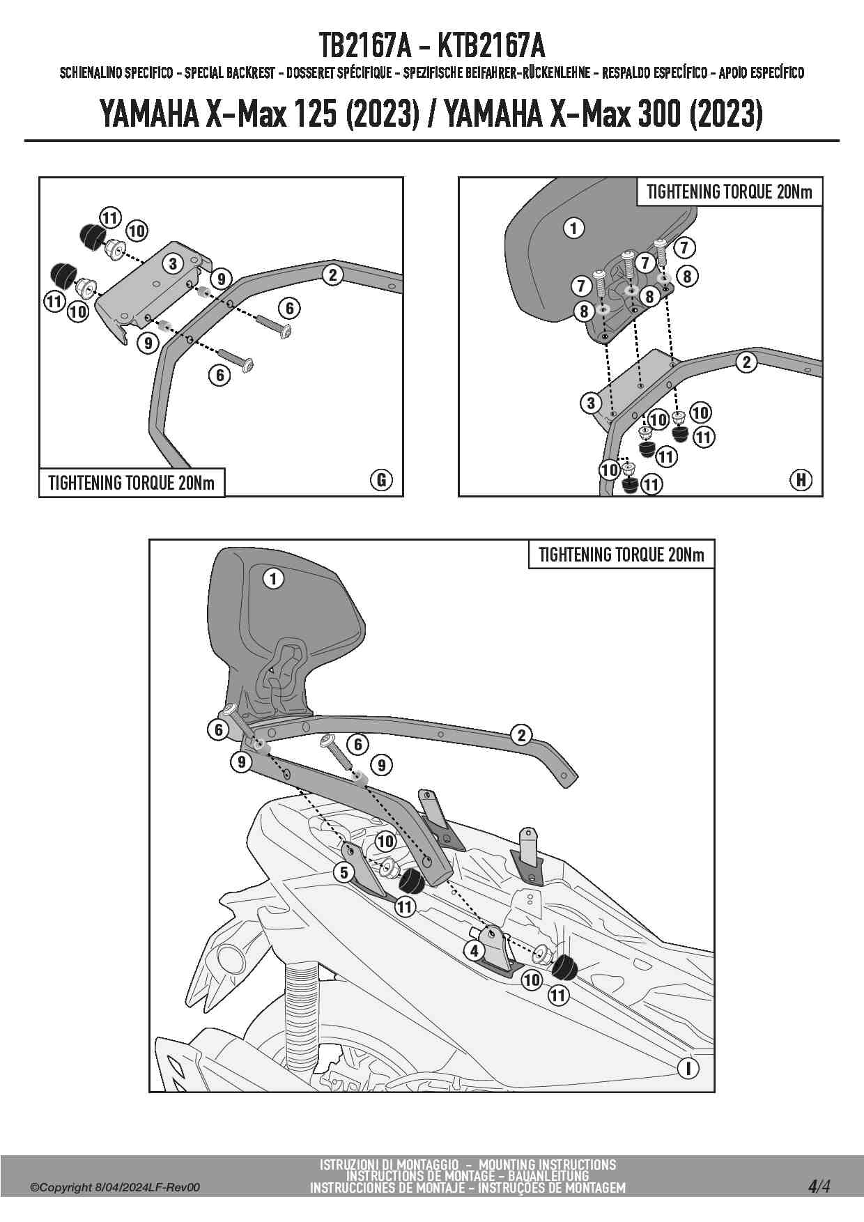 Oparcie dla pasażera Givi TB2167A do skutera Yamaha X-Max 125/300 (23-25) / X-Max 300 Tech MAX (25)