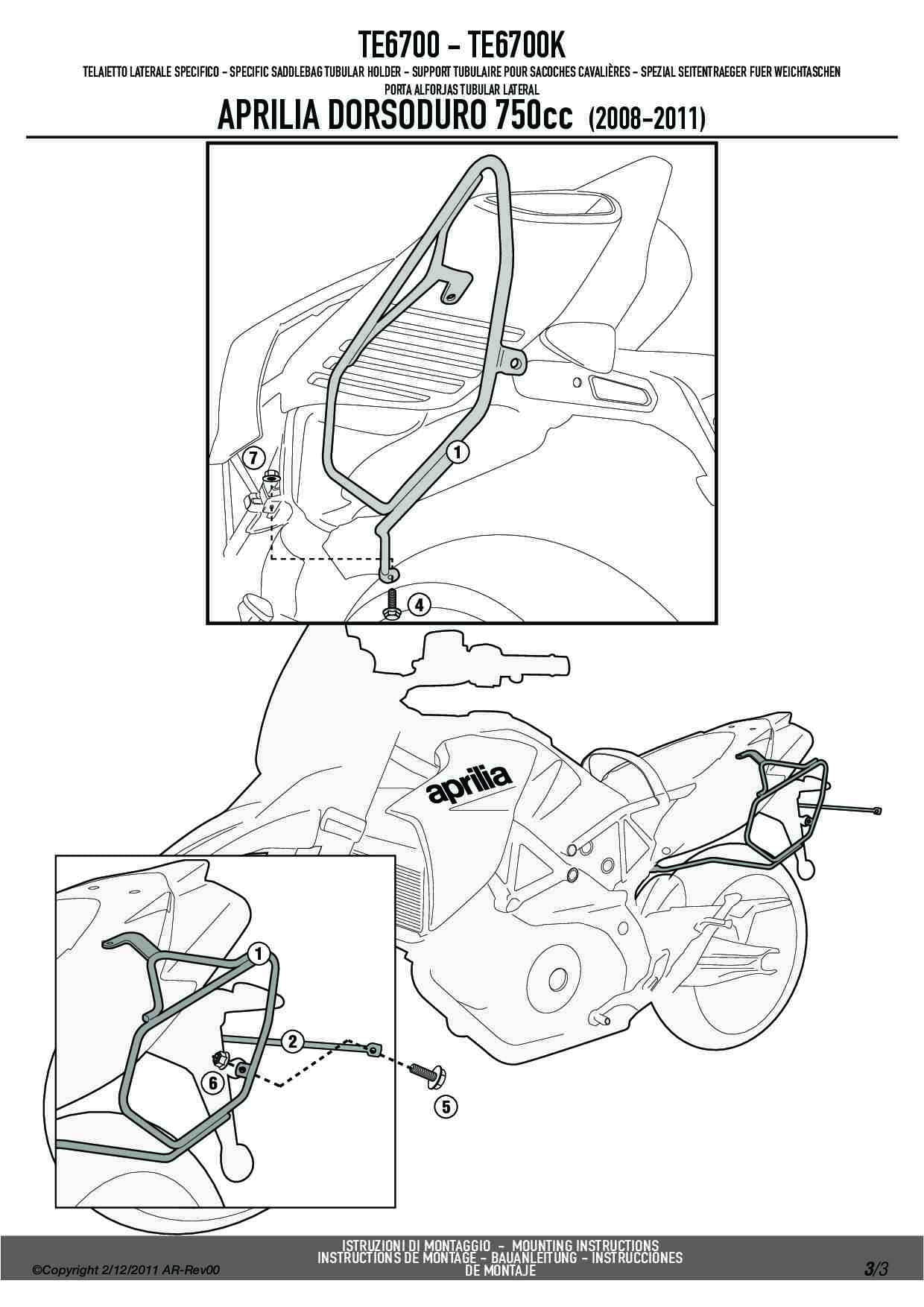 Stelaż sakw bocznych Easylock Givi TE6700 - Aprilia Dorsoduro 750 / 1200 (08-16)