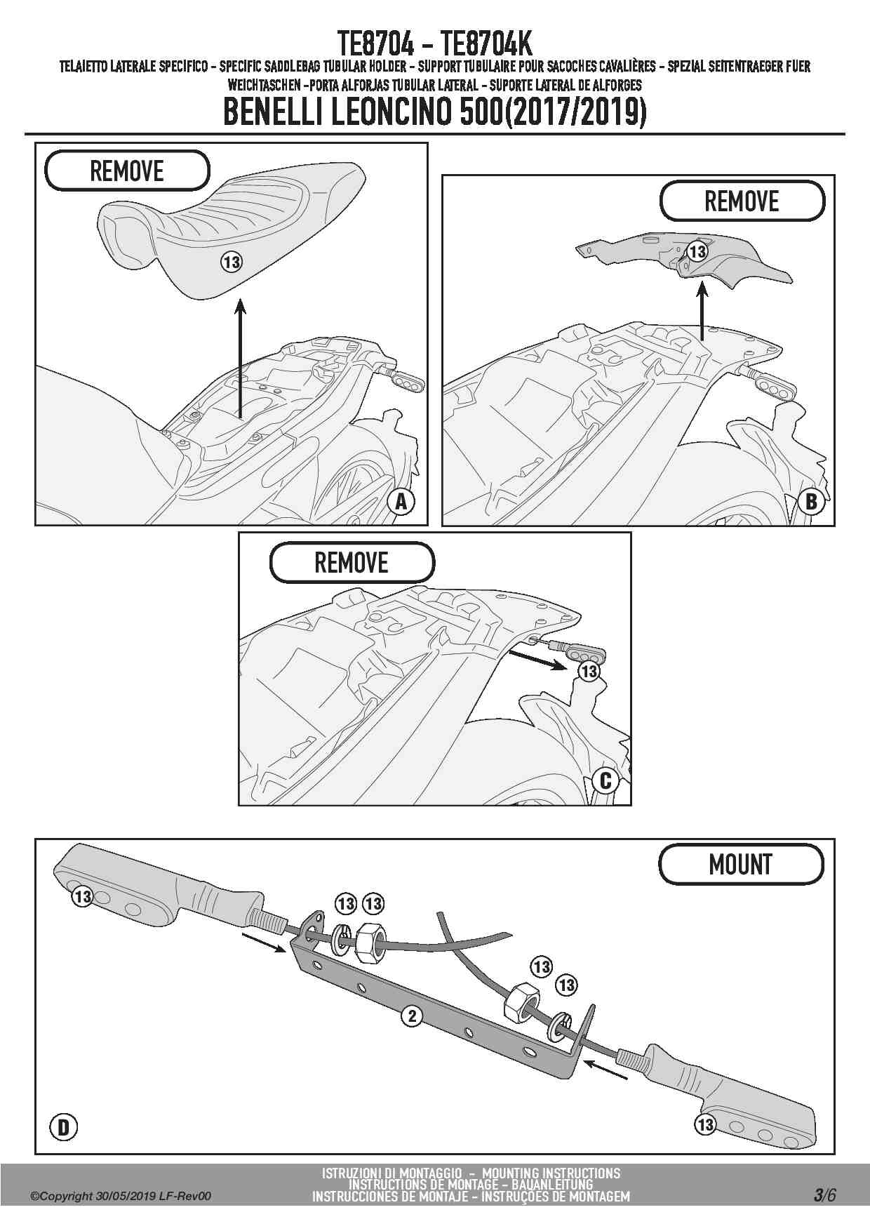Stelaż sakw bocznych Easylock Givi TE8704 - Benelli Leoncino 500 / Trail (17-25)