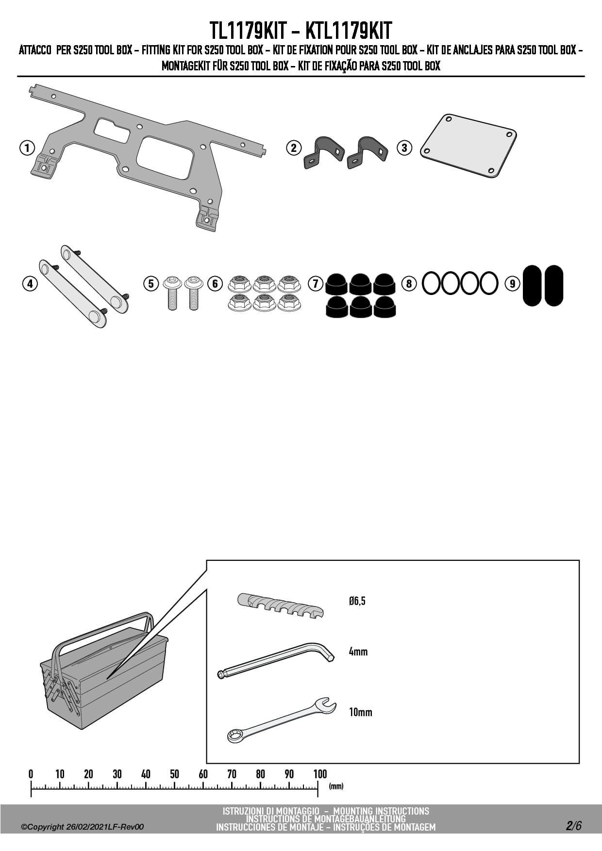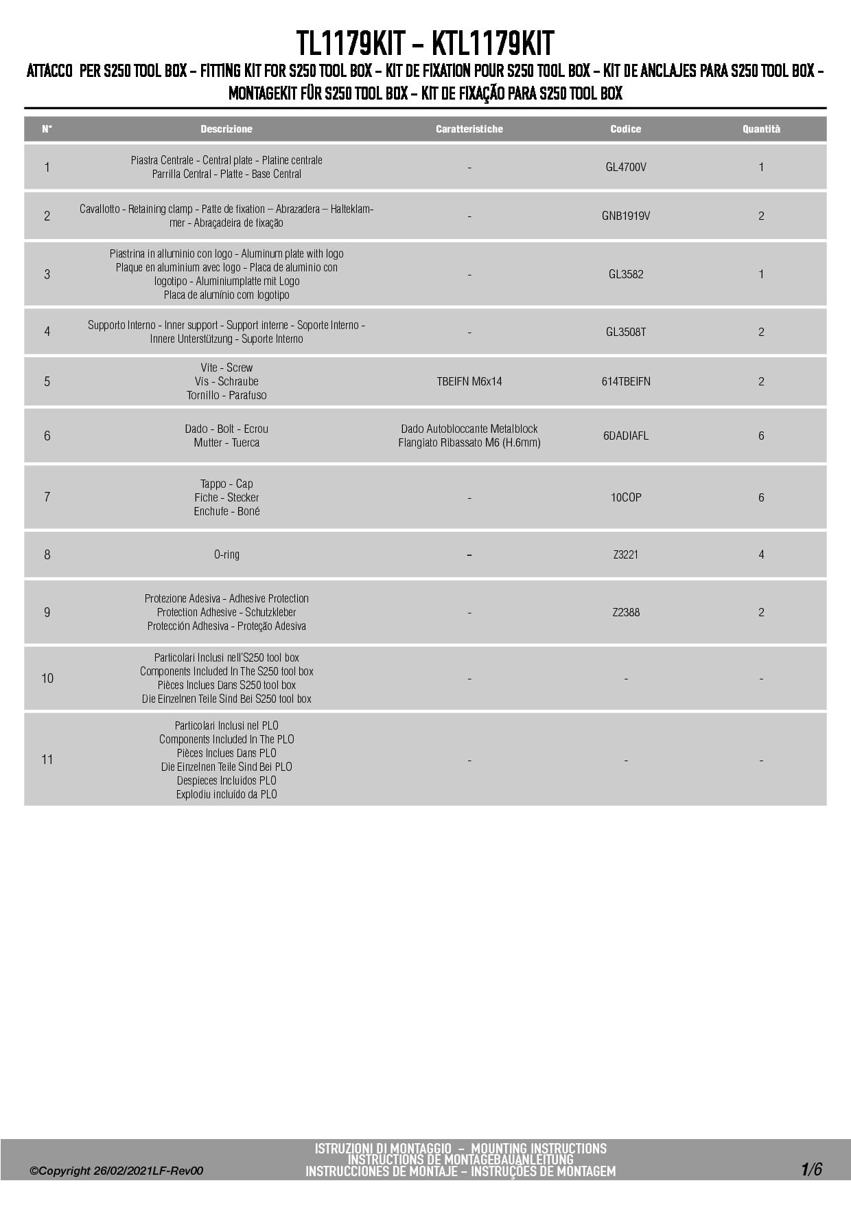 Specjalny zestaw TL1179KIT do montażu skrzynki narzędziowej S250 Tool Box na stelażu PLO1179MK oraz PLO1179CAM.