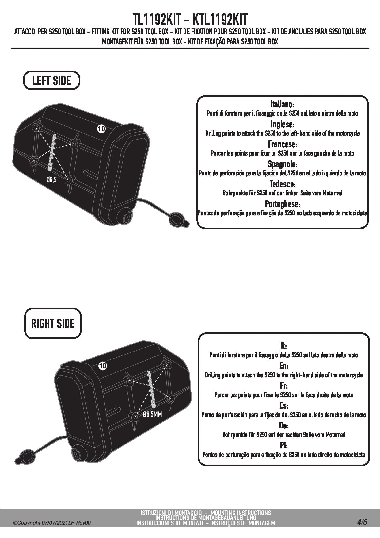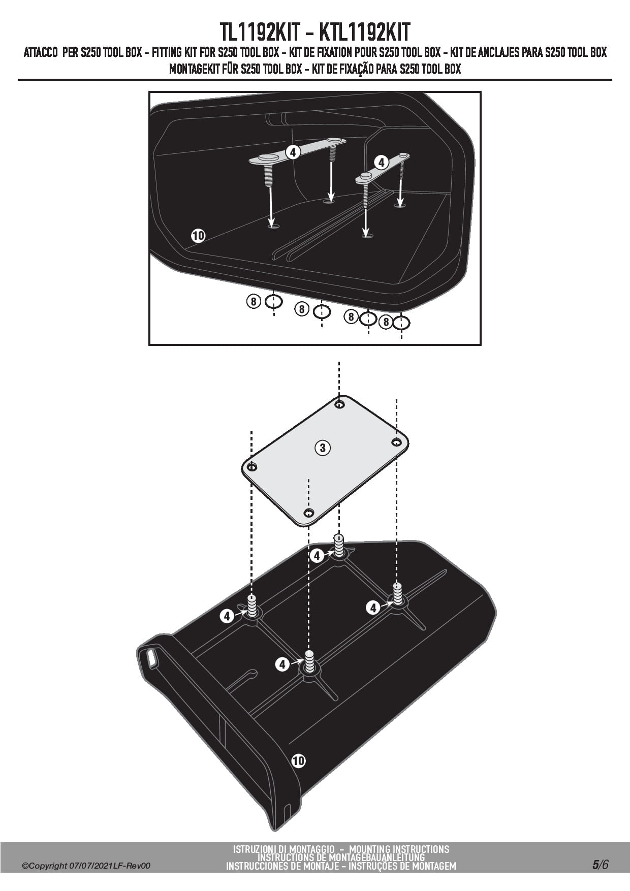 Specjalny zestaw TL1192KIT do montażu skrzynki narzędziowej S250 Tool Box na stelażu:
