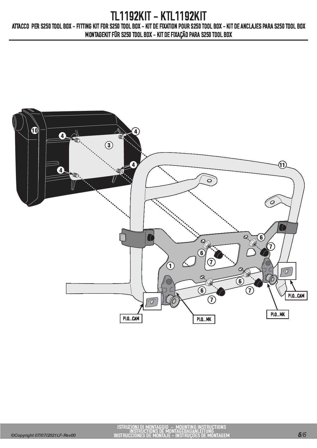 Givi TL1192KIT kit montażowy S250 do stelaża PLO1192MK/PLO1192CAM/PLOS1178CAM - Honda