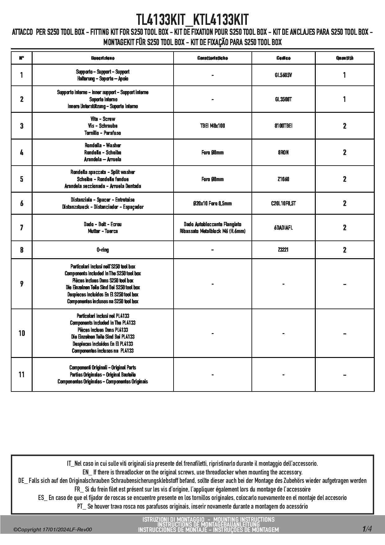 Specjalny zestaw TL4133KIT do montażu skrzynki narzędziowej S250 Tool Box.