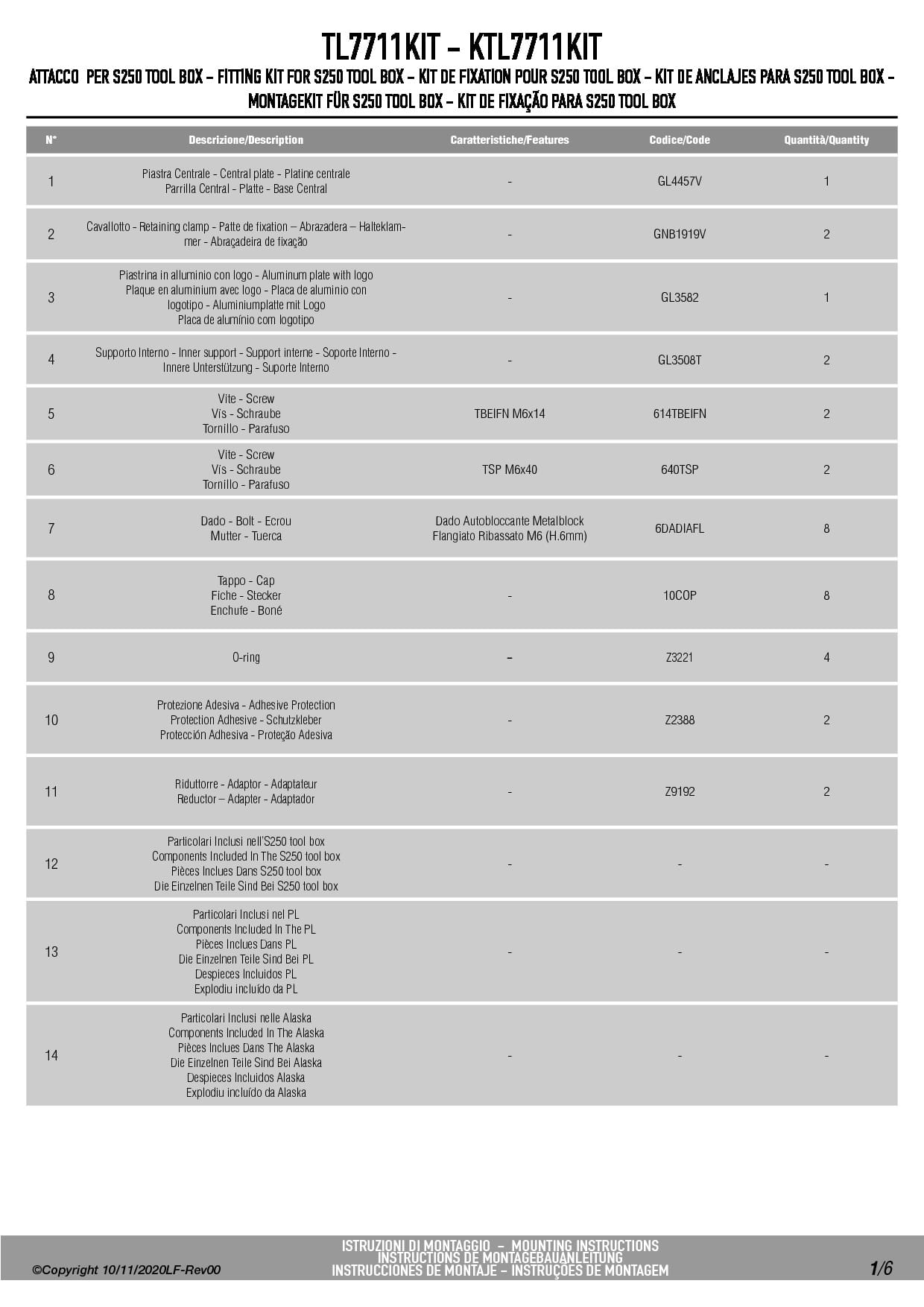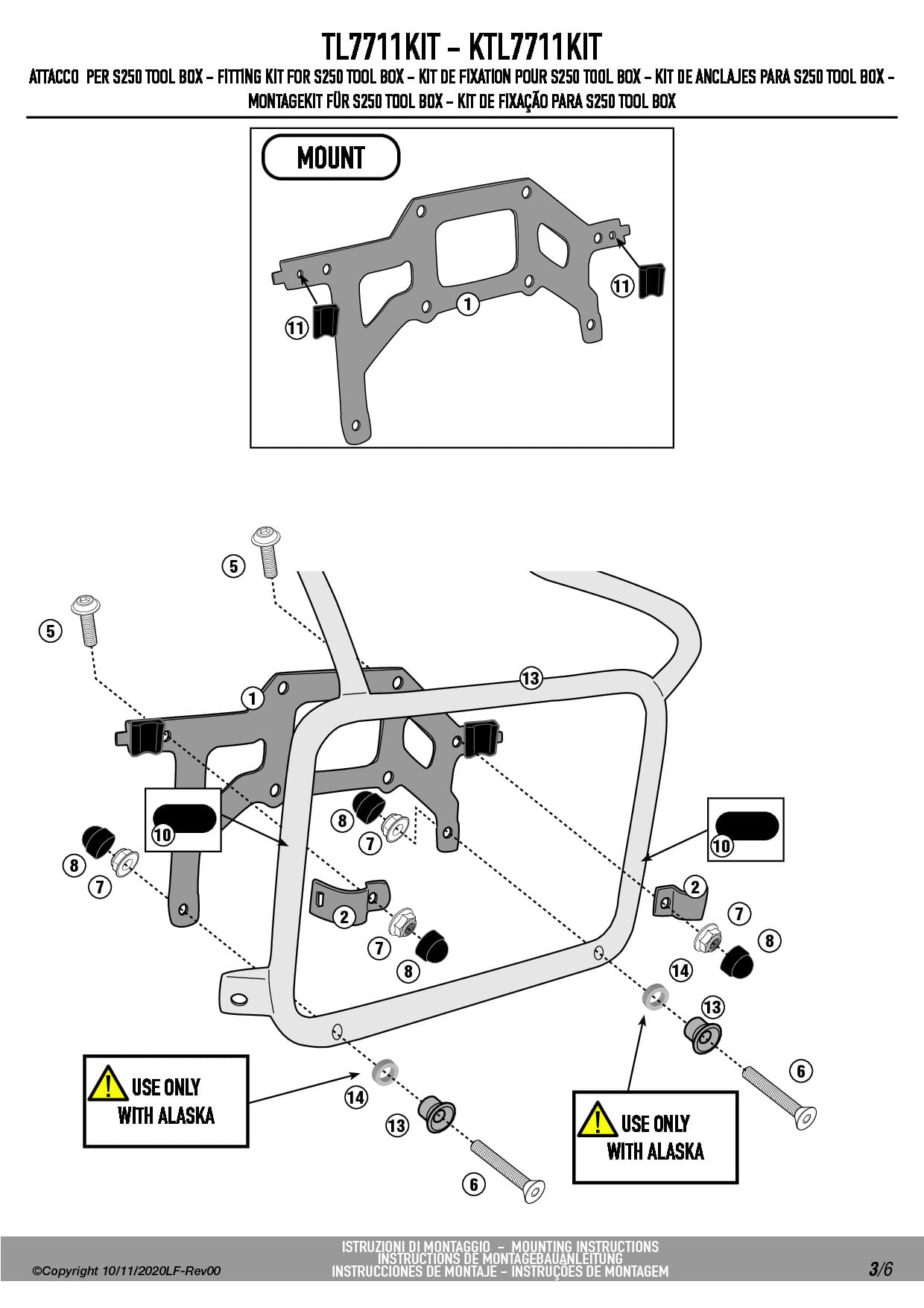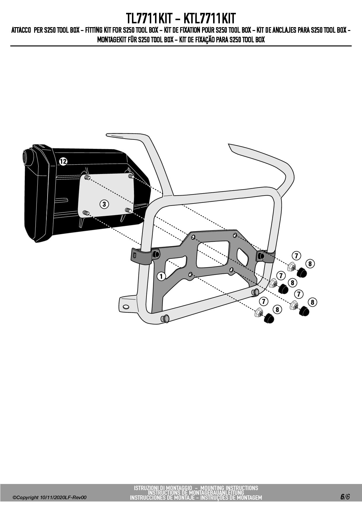 Specjalny zestaw TL7711KIT do montażu skrzynki narzędziowej S250 Tool Box na stelażu bocznym Givi PL7711 (KTM) oraz Givi PL9054/PL9055 (Royal Enfield).