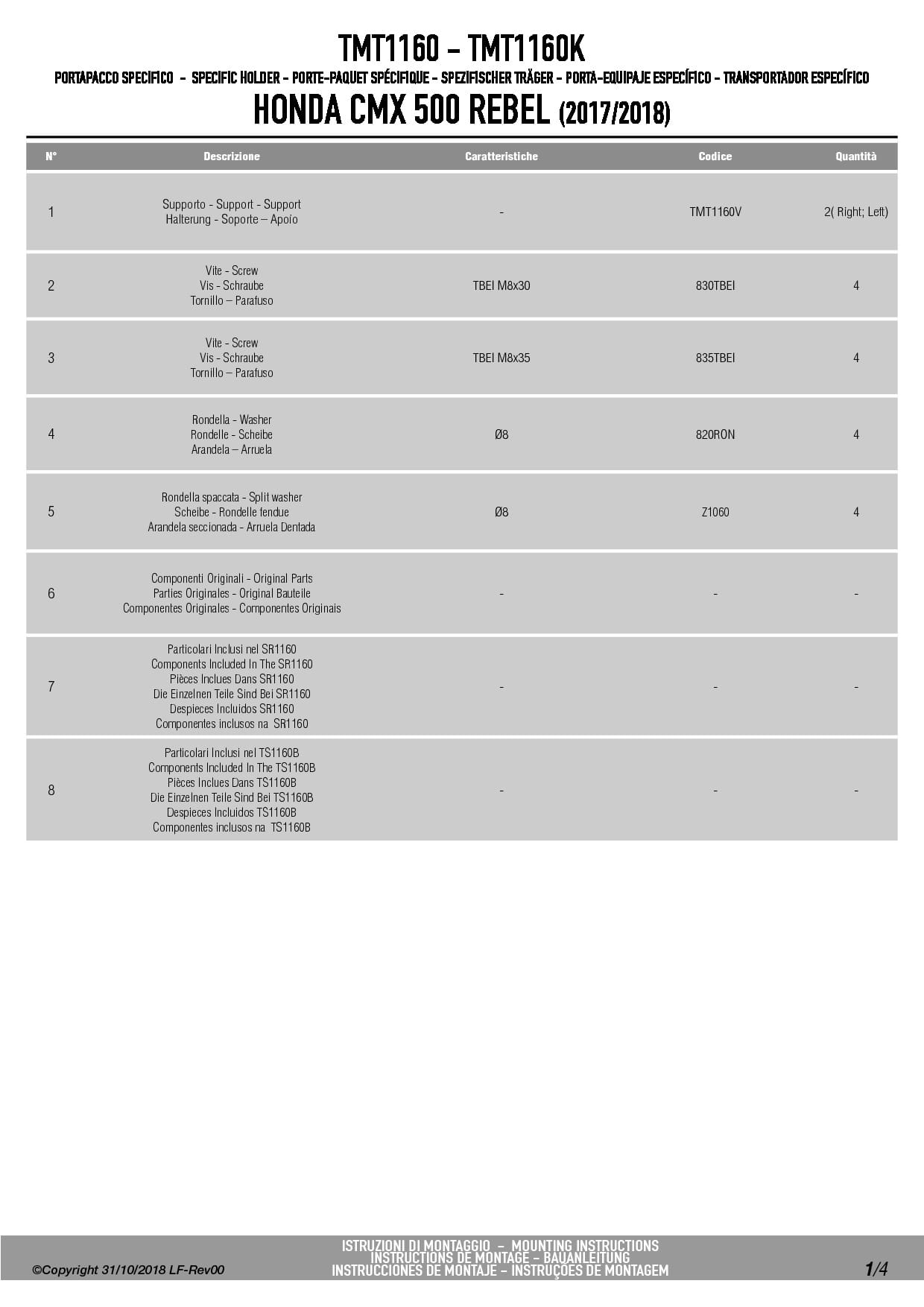 Givi TMT1160 Stelaż do sakw bocznych MT501 Honda CMX 500 Rebel (17-25)
