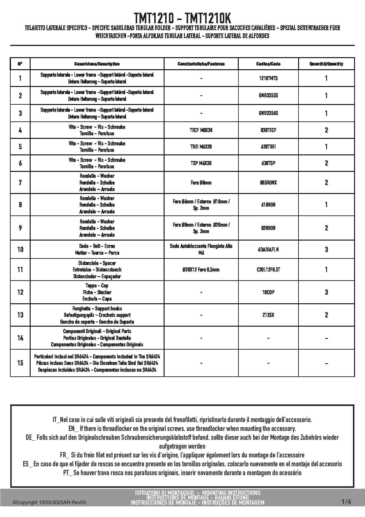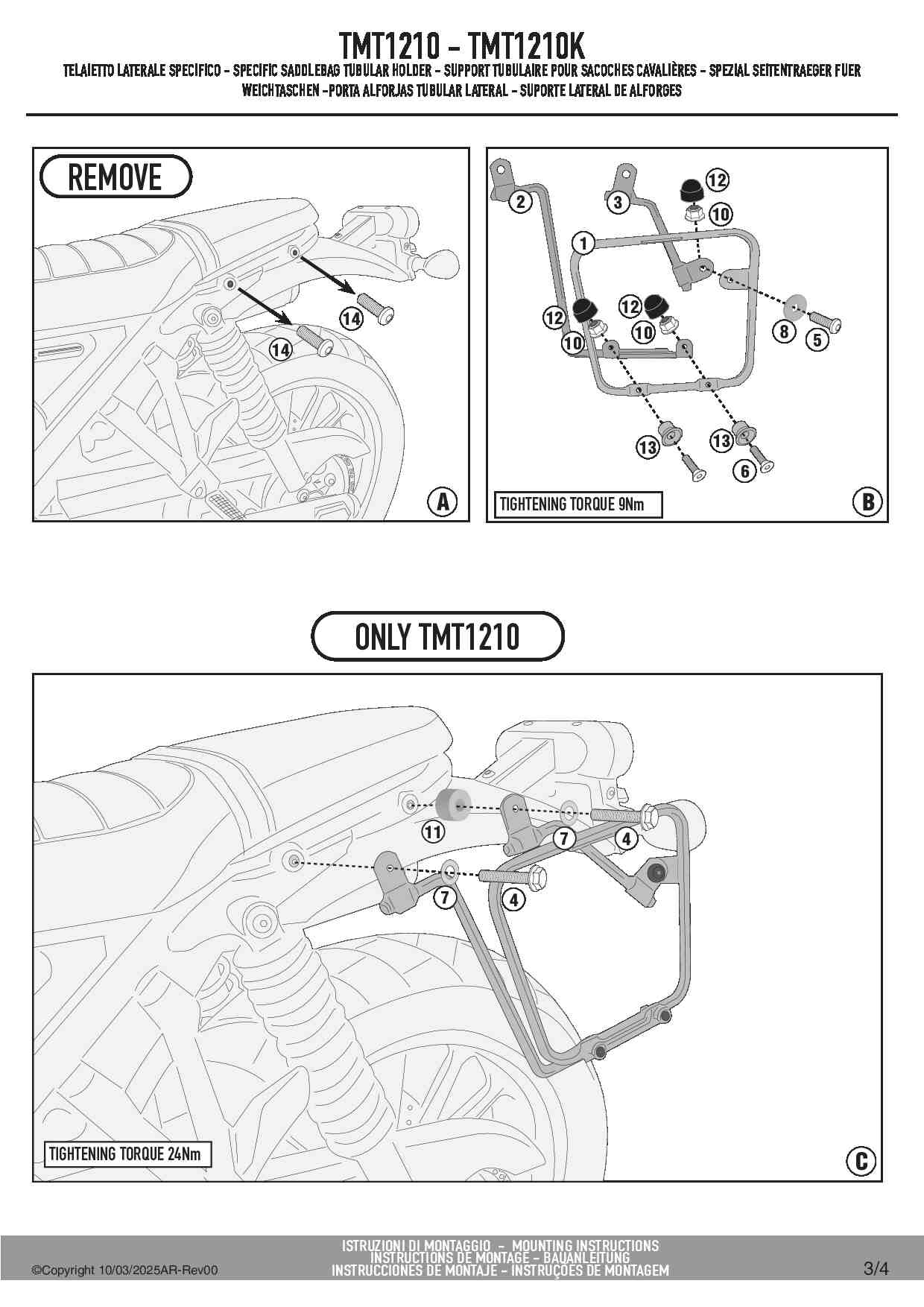 Stelaż Givi TMT1210 pod sakwy boczne w systemie MULTILOCK.