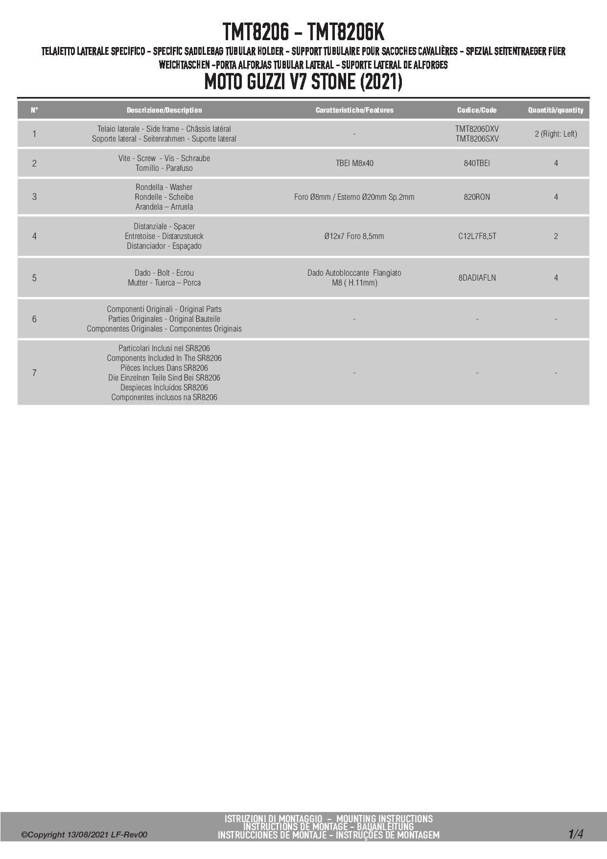 Givi TMT8206 Stelaż pod sakwy Moto Guzzi V7 850 Stone / Special (21-25) Metro-T range