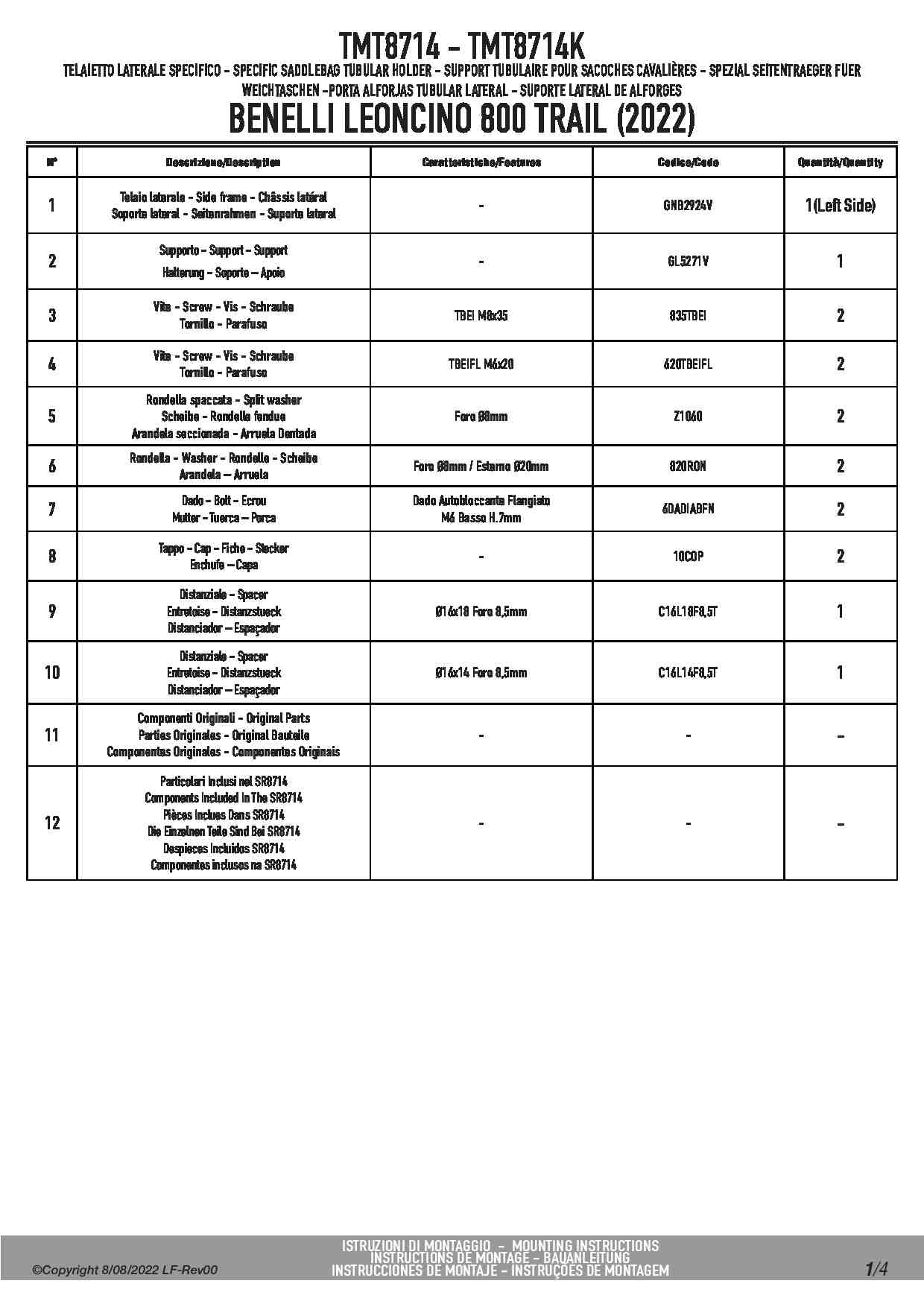 Stelaż Givi TMT8714 do sakwy bocznej MT501 - Benelli Leoncino 800 / Trail (22-25)