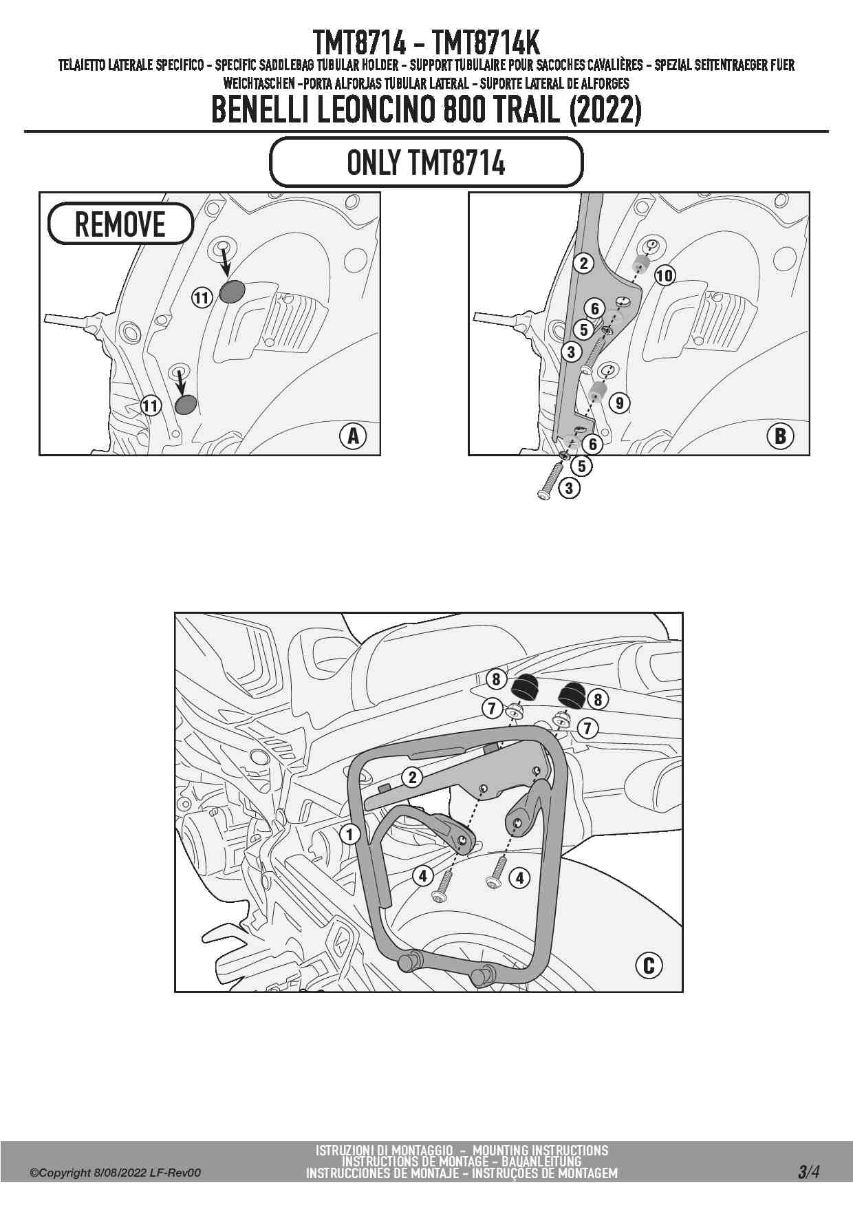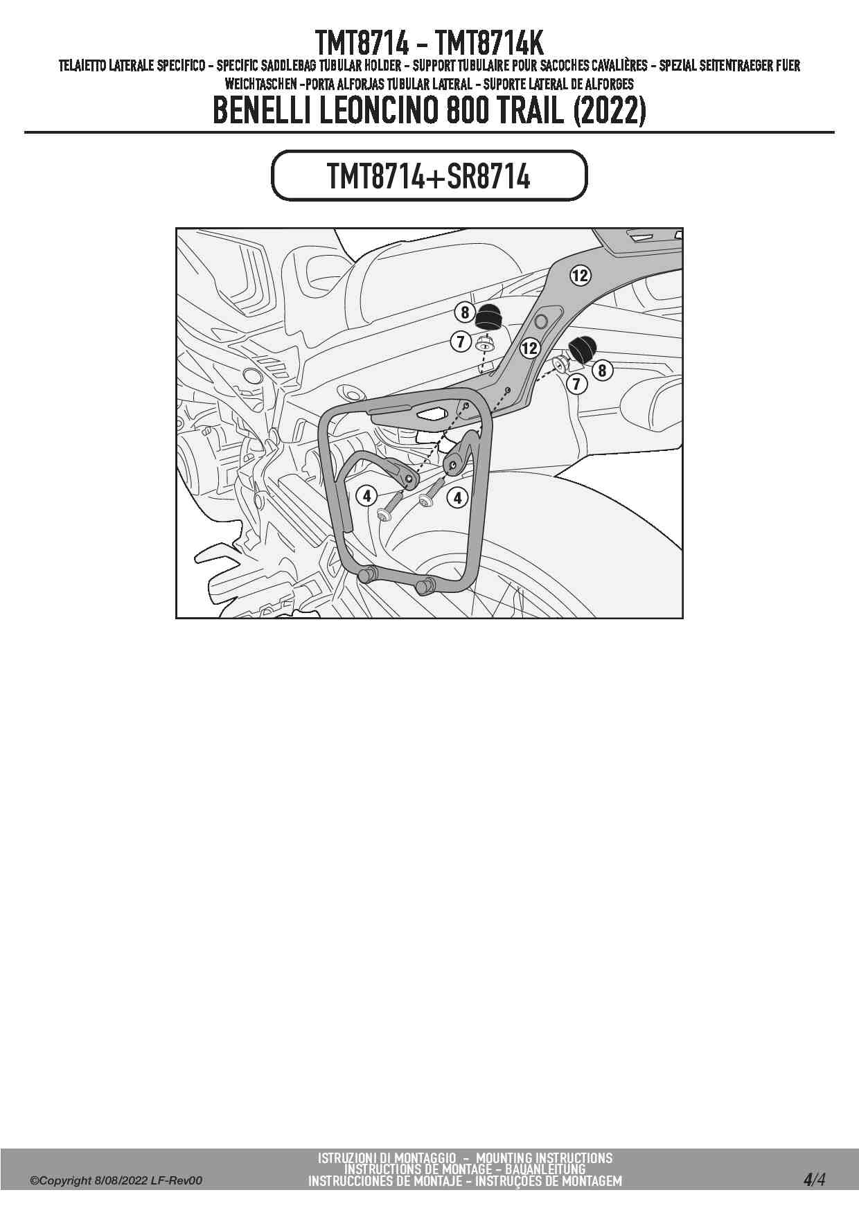 Stelaż Givi TMT8714 pod sakwę boczną w systemie MULTILOCK do motocykla Benelli Leoncino 800 oraz 800 Trail.
